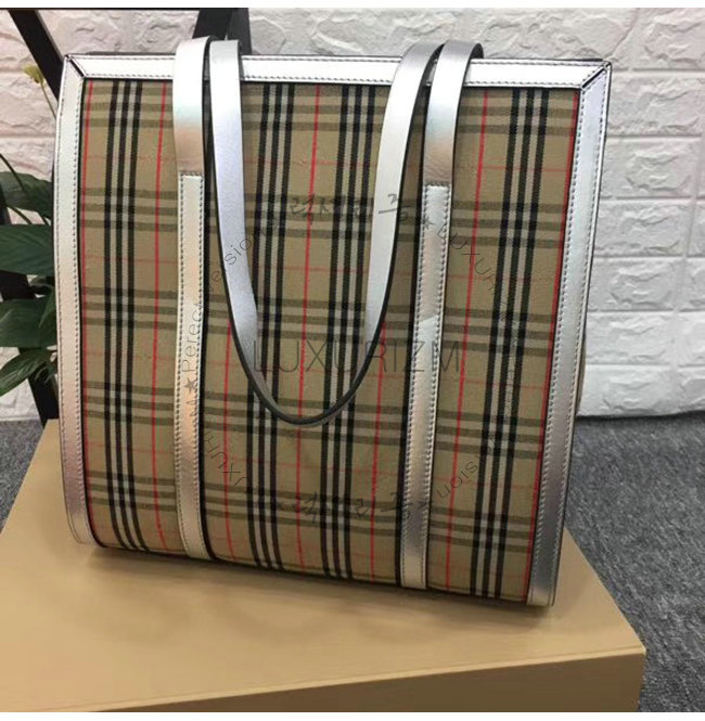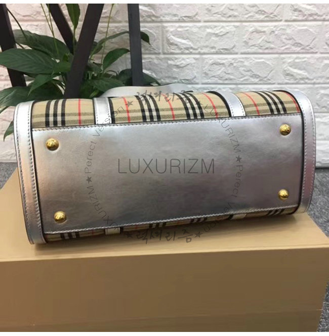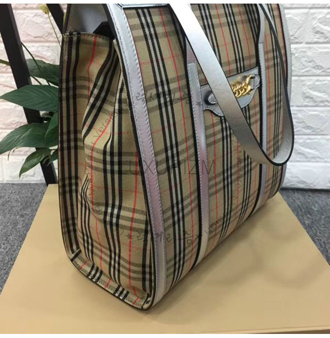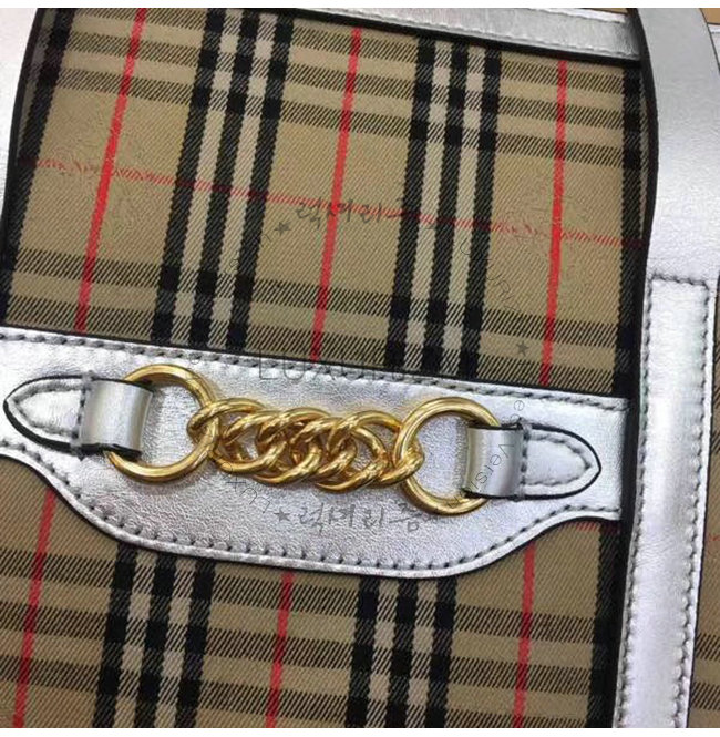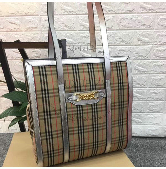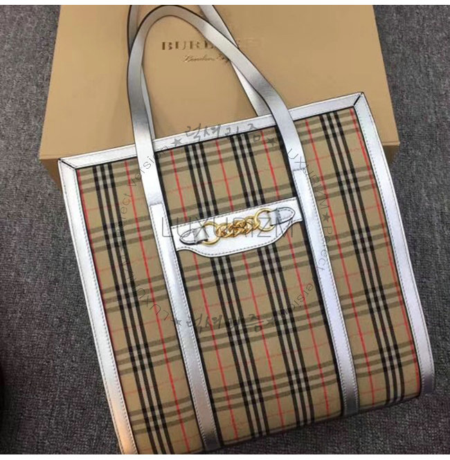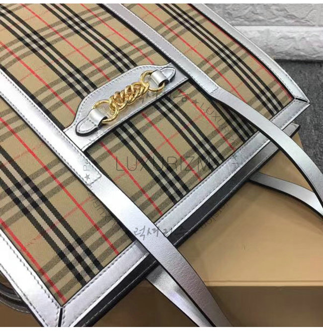 [스페셜오더]BURBERRY-80064371 버버리 스몰 1983 체크 실버 가죽 링크 토트백