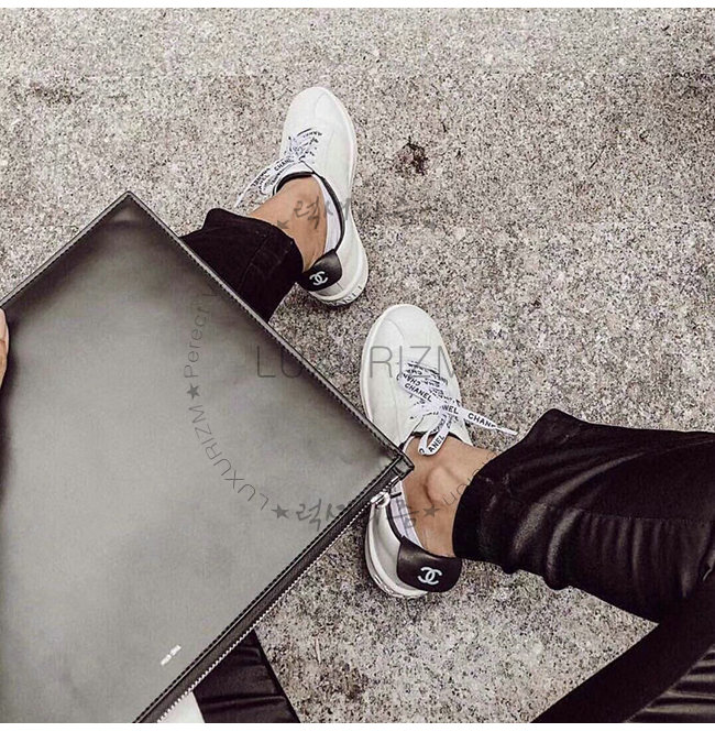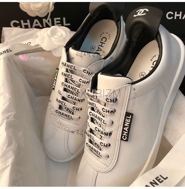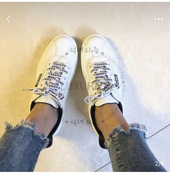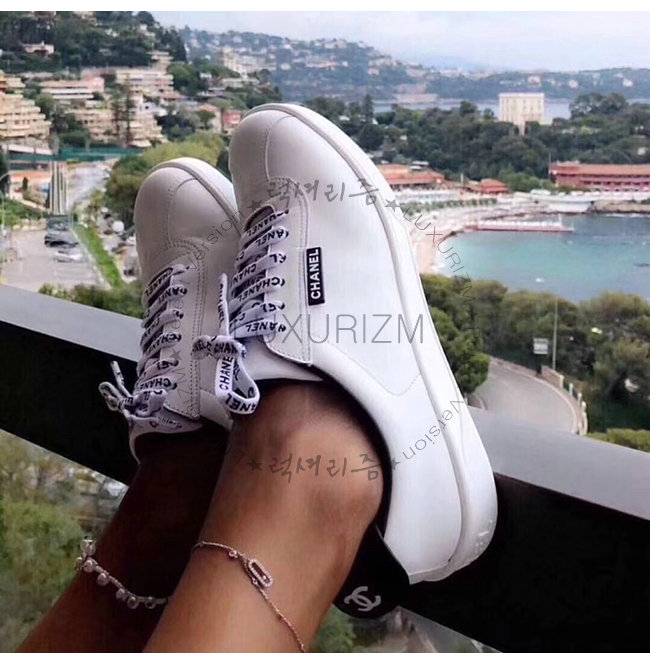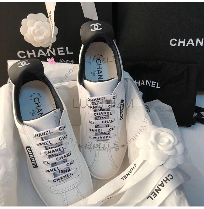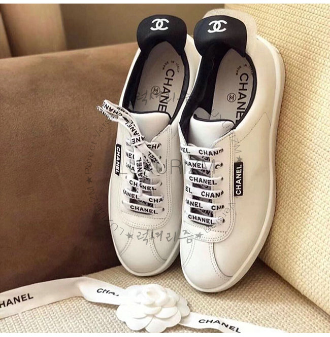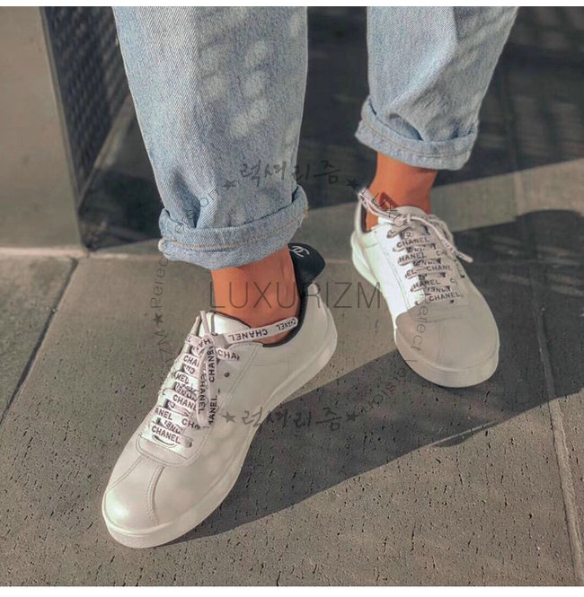 CHANEL-G34085 샤넬 화이트 카프스킨 스니커즈