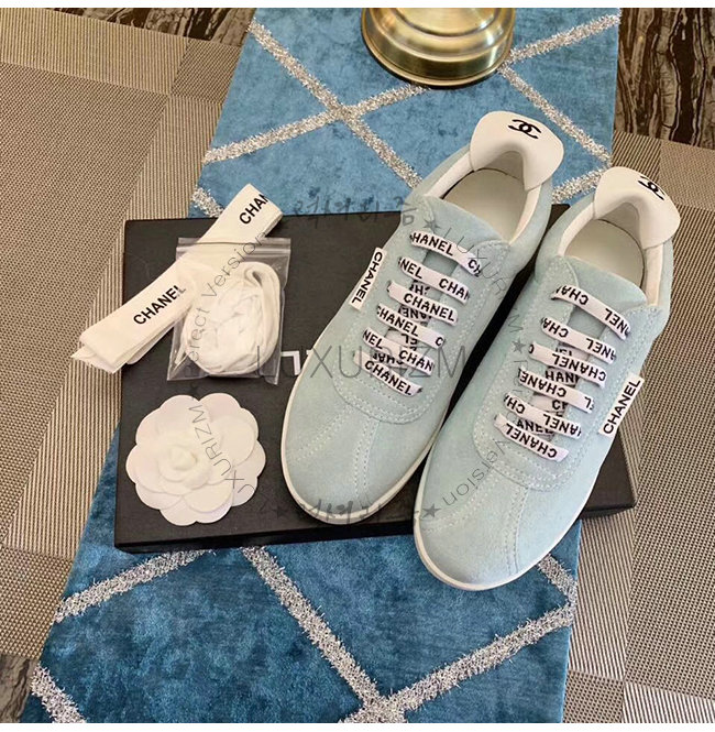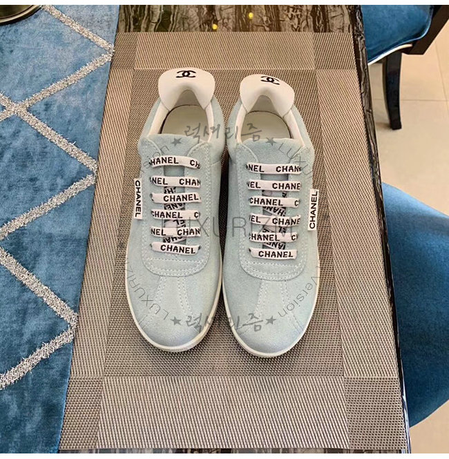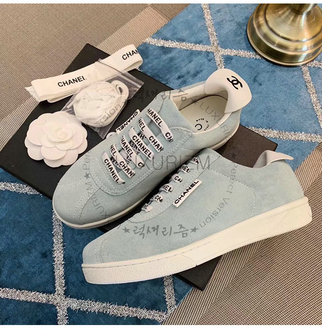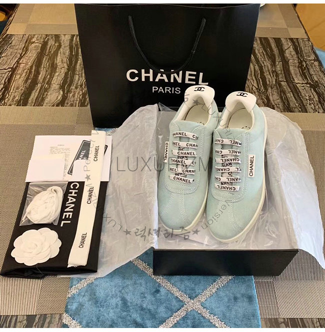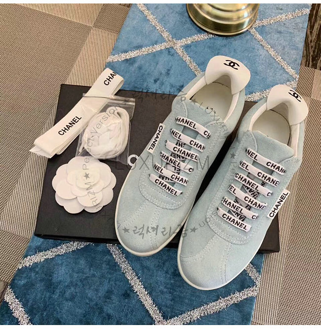CHANEL-G34085 샤넬 스카이 블루 스웨이드 카프스킨 스니커즈