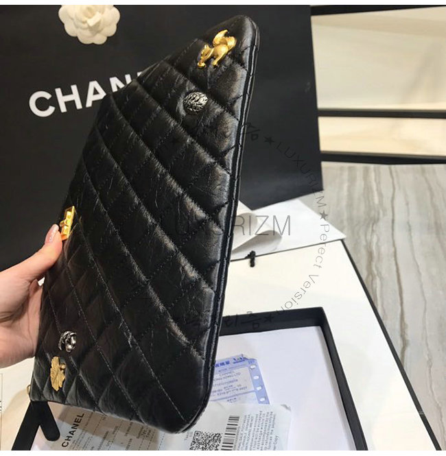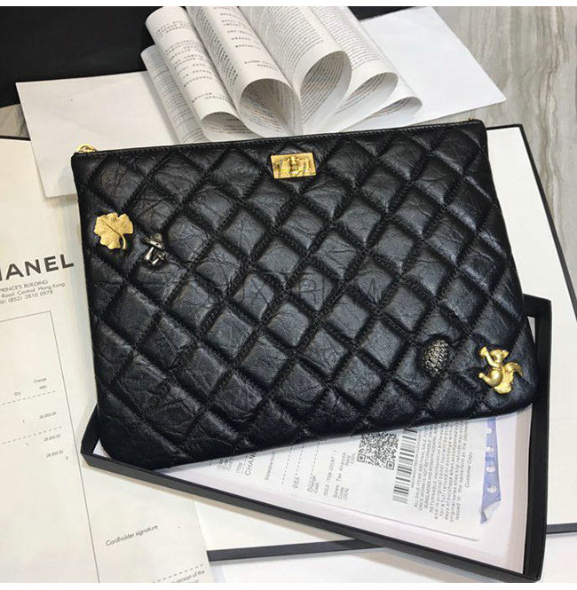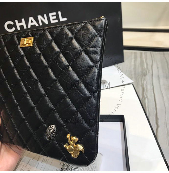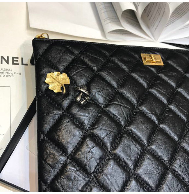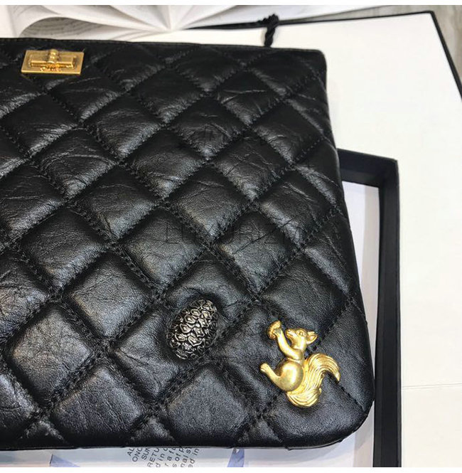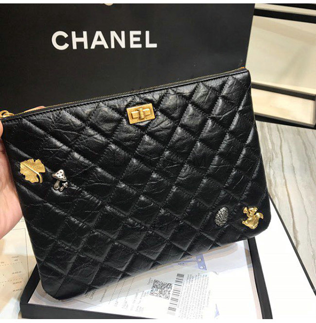 [스페셜오더]CHANEL-A82725 샤넬 블랙 빈티지 카프스킨 참 장식 골드메탈 2.55 케이스