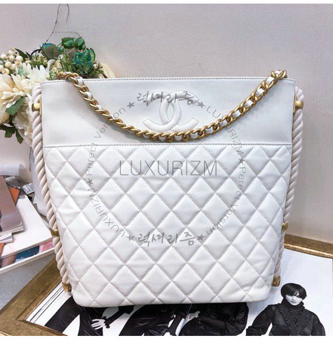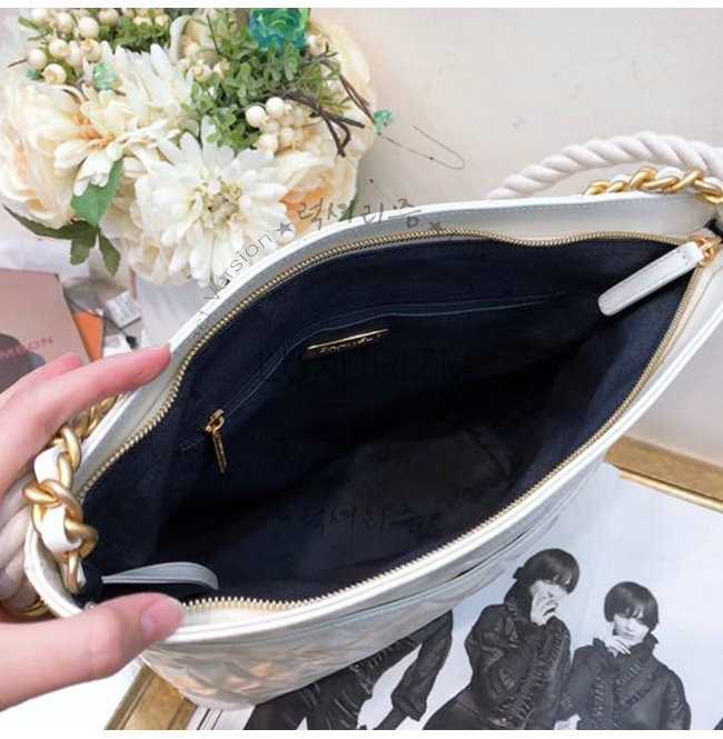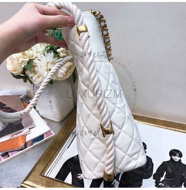 [스페셜오더]CHANEL-AS0076 샤넬 화이트 크럼플드 카프스킨 골드메탈 호보 핸드백
