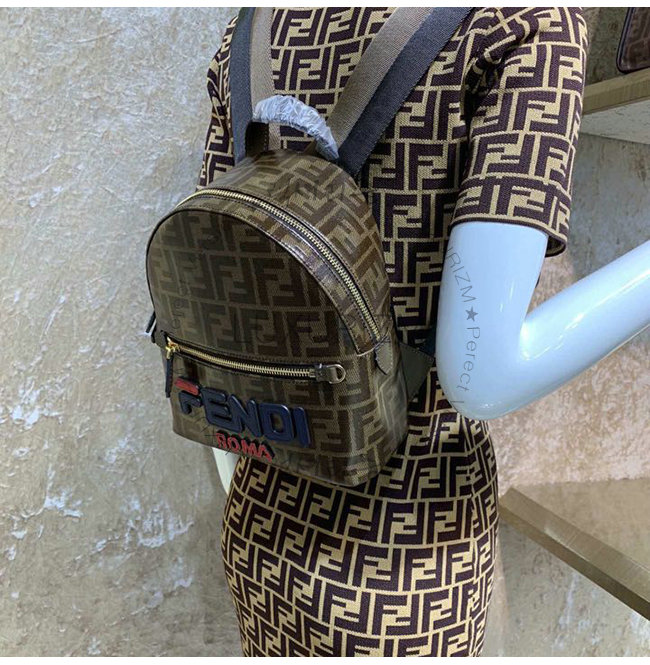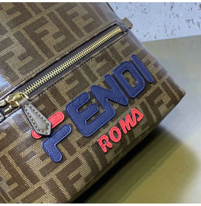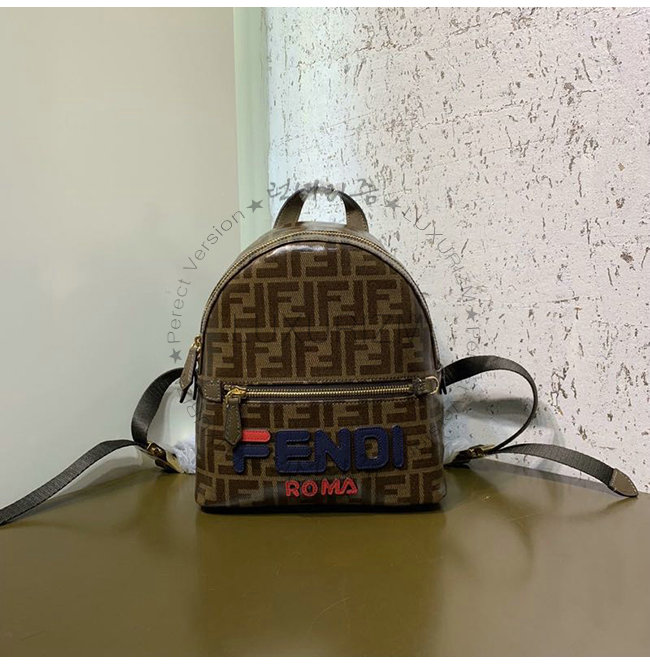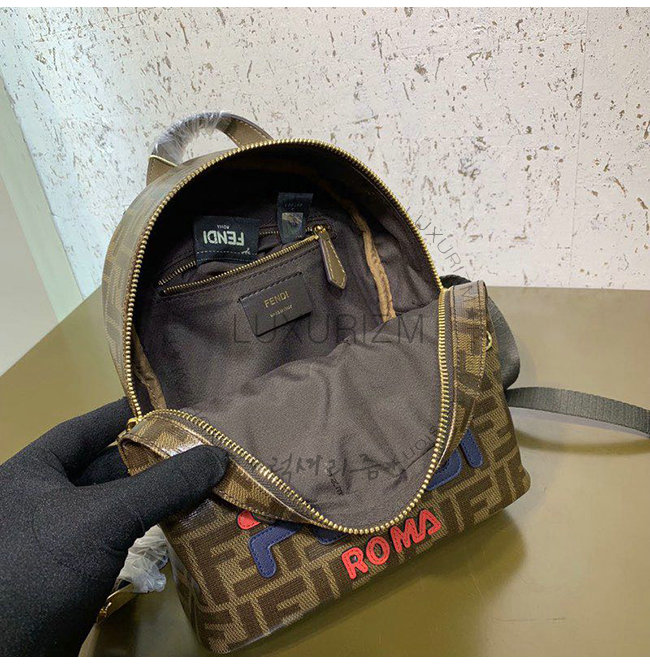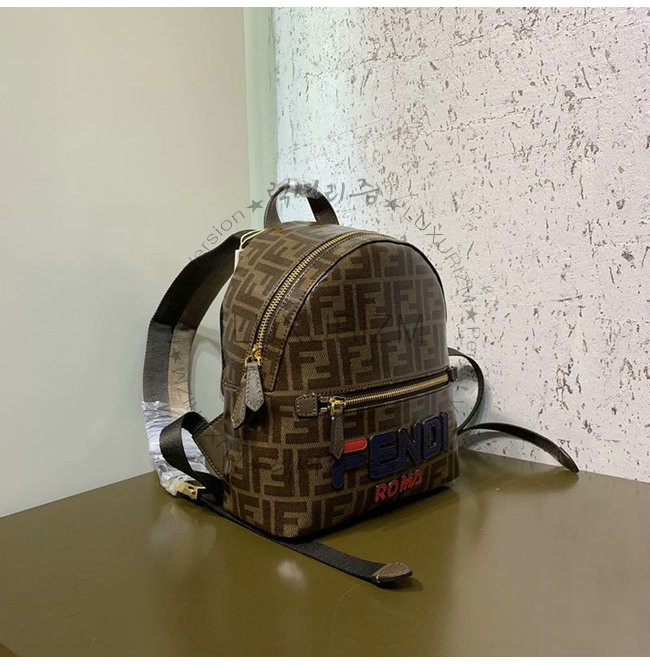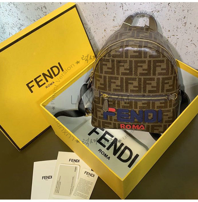 [스페셜오더]FENDI-8BZ036 펜디 브라운 FF 페브릭 Fendi Mania 레터링 장식 스몰 백팩