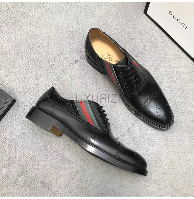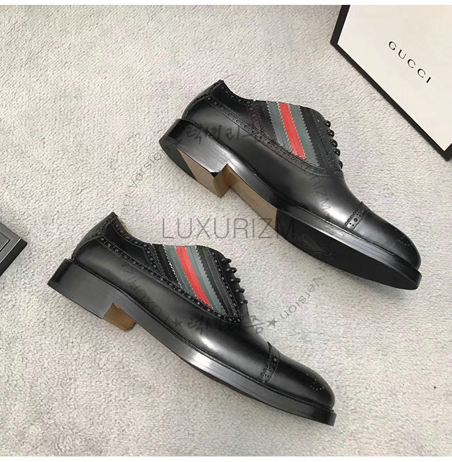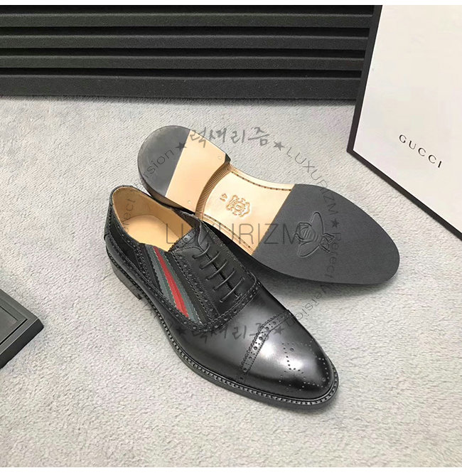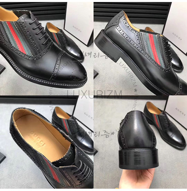 [스페셜오더]GUCCI-547592 1078 구찌 블랙 가죽 Web 디테일 레이스업