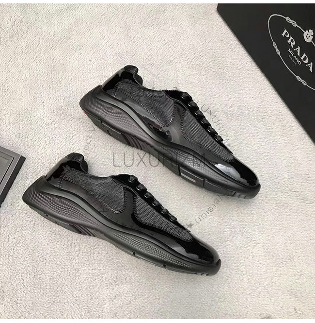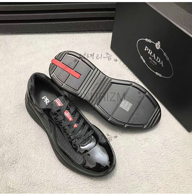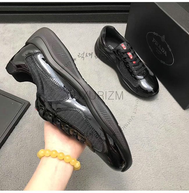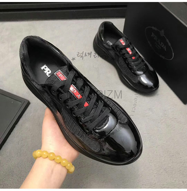 [스페셜오더]PRADA-4E3304 프라다 블랙 페이턴트 가죽 기능성 패브릭 스니커즈