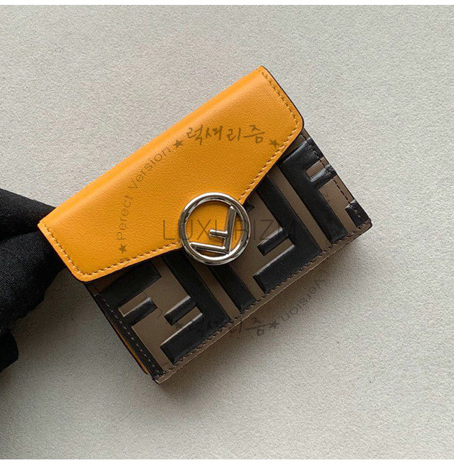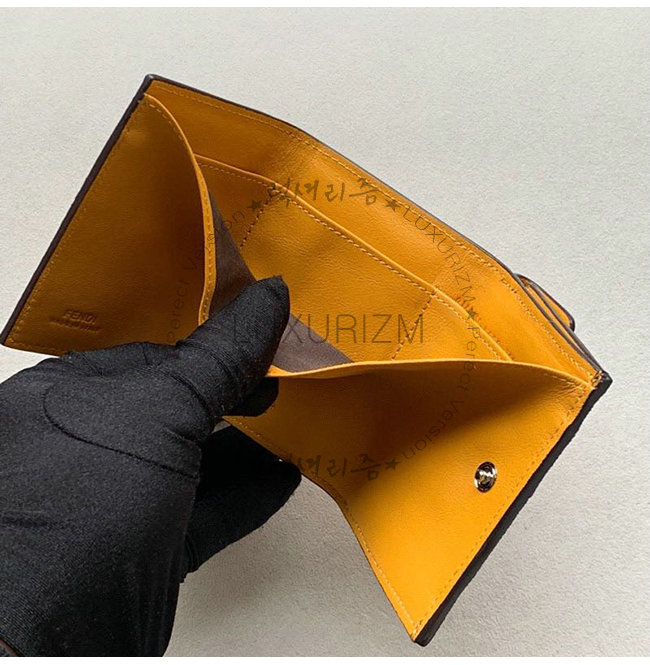 F is Fendi 컴팩트 트리폴드 지갑. 넓은 내부 지폐 수납 공간.