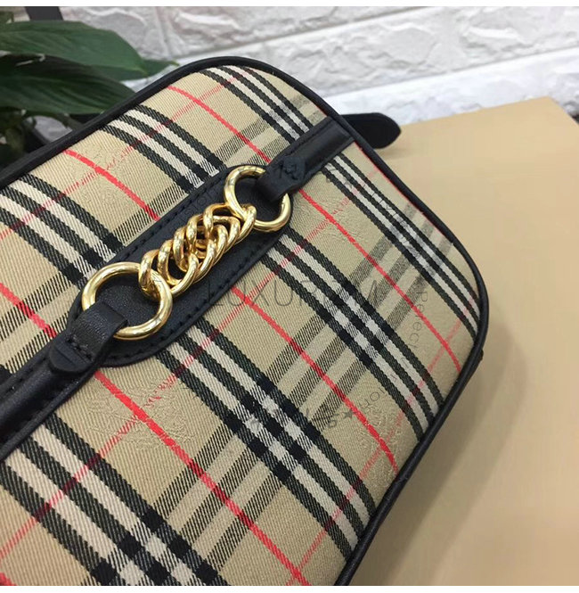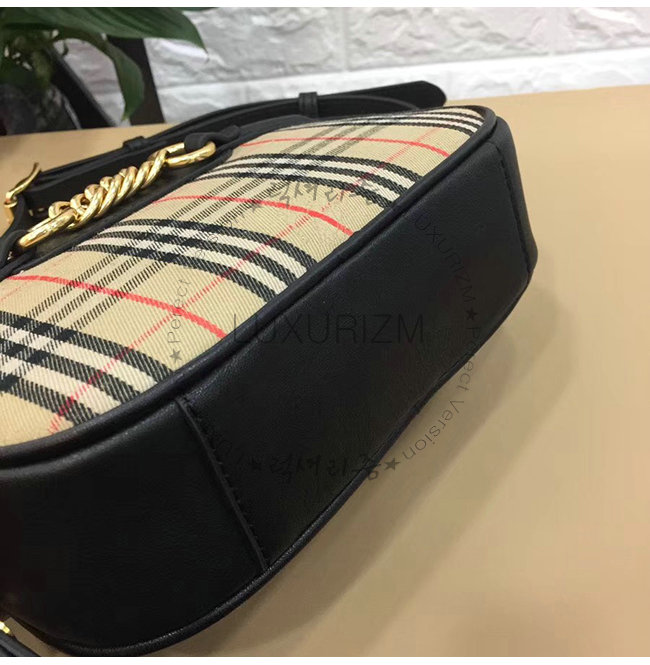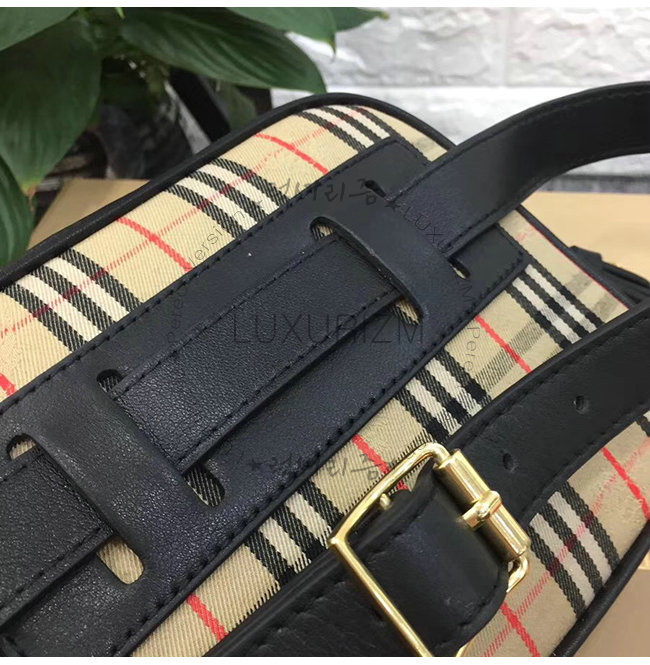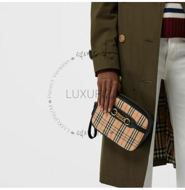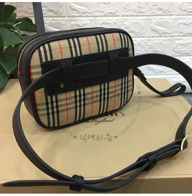 [스페셜오더]BURBERRY-80073521 버버리 블랙 가죽 트리밍 1983 체크 링크 범 백