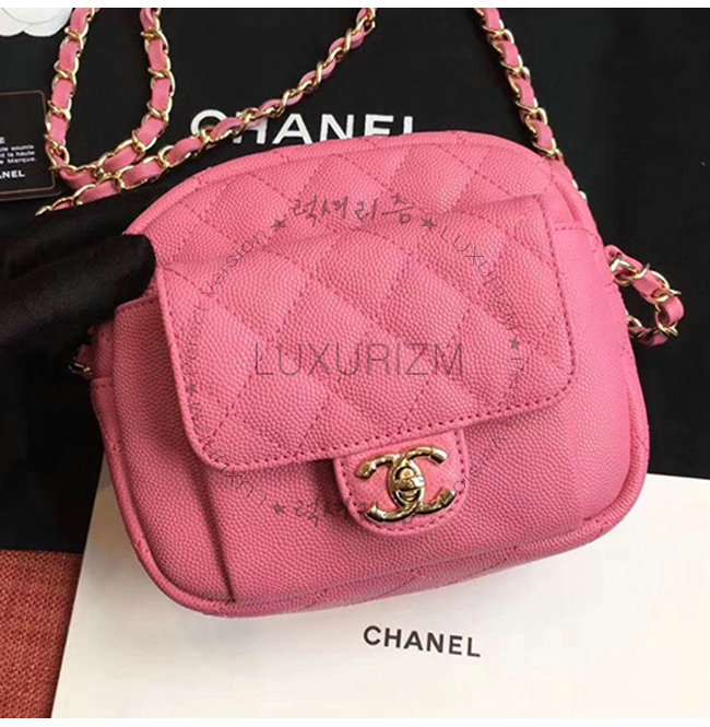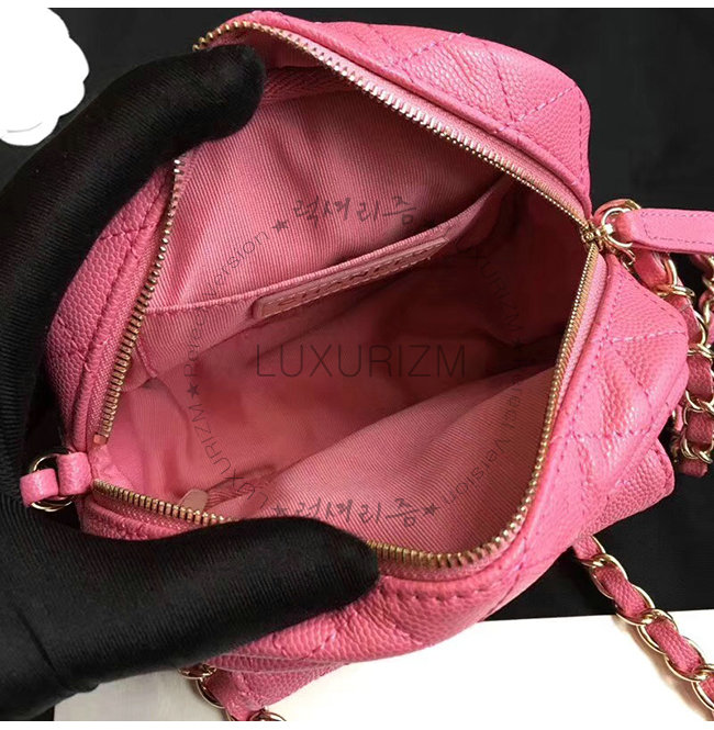 [스페셜오더]CHANEL-AS0005 샤넬 핑크 그레인드 카프스킨 골드메탈 미니 카메라 케이스