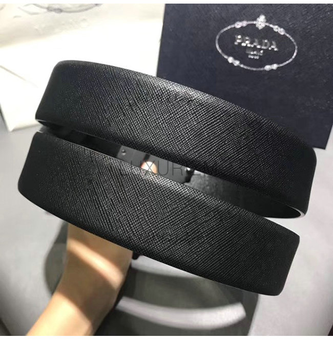 PRADA-2CM013 프라다 블랙 사피아노 가죽 리버서블 벨트 34MM