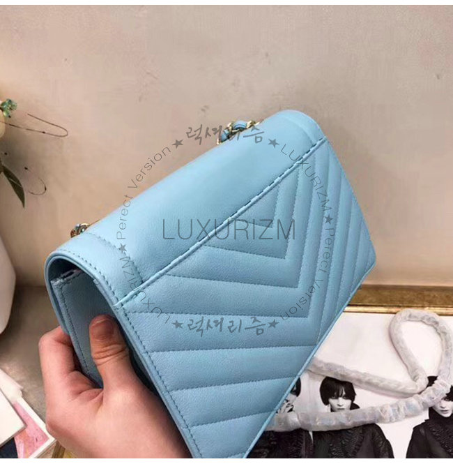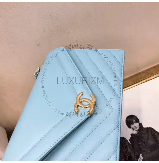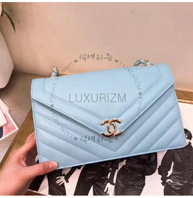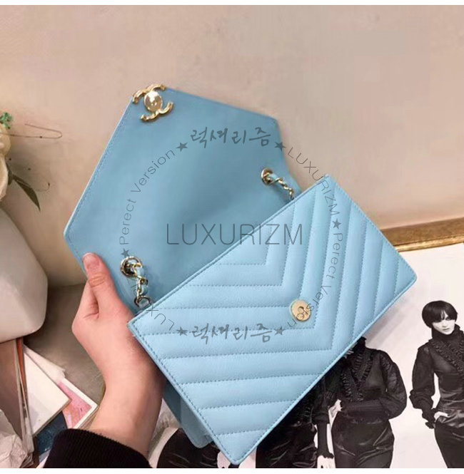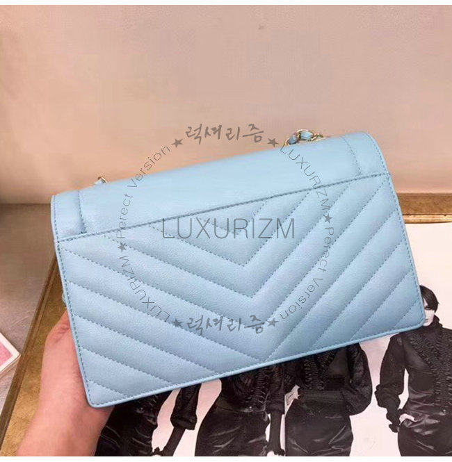 [스페셜오더]CHANEL-AS0027 샤넬 라이트 블루 카프스킨 골드메탈 플랩백