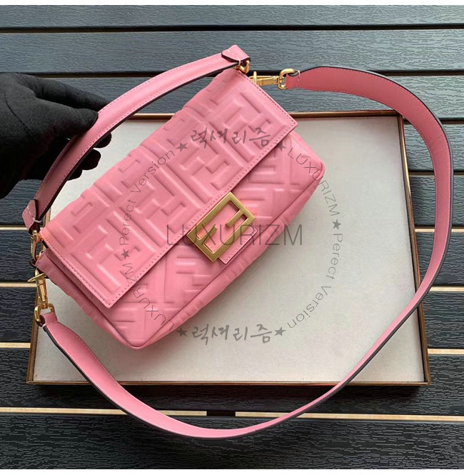 [스페셜오더]FENDI-8BR600 펜디 핑크 FF 모티프 양가죽 미디엄 바게트백