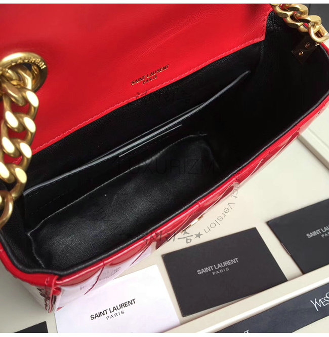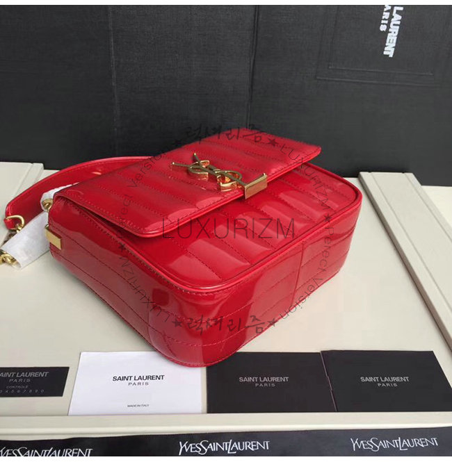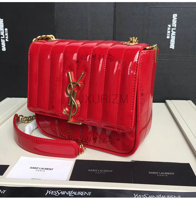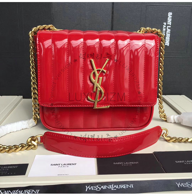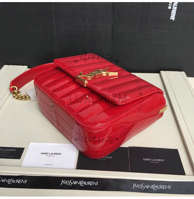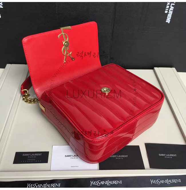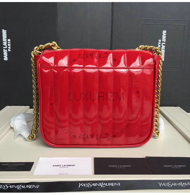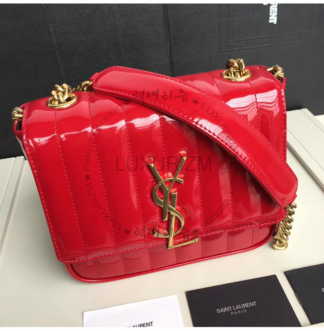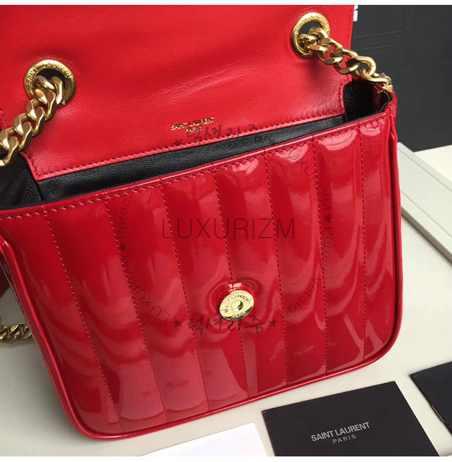 [스페셜오더]SAINT LAURENT-554125 생 로랑 레드 퀼티드 페이턴트 송아지 가죽 비키 미니 체인백