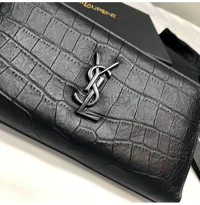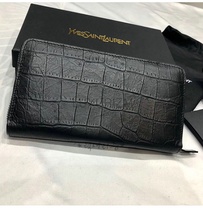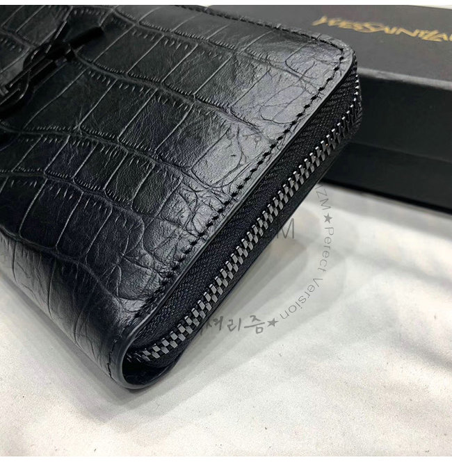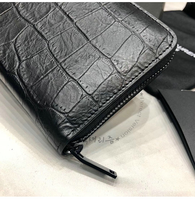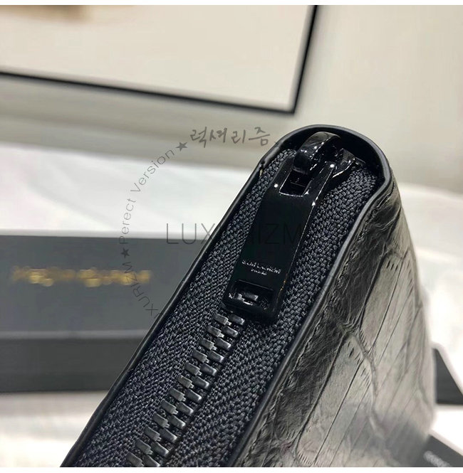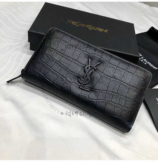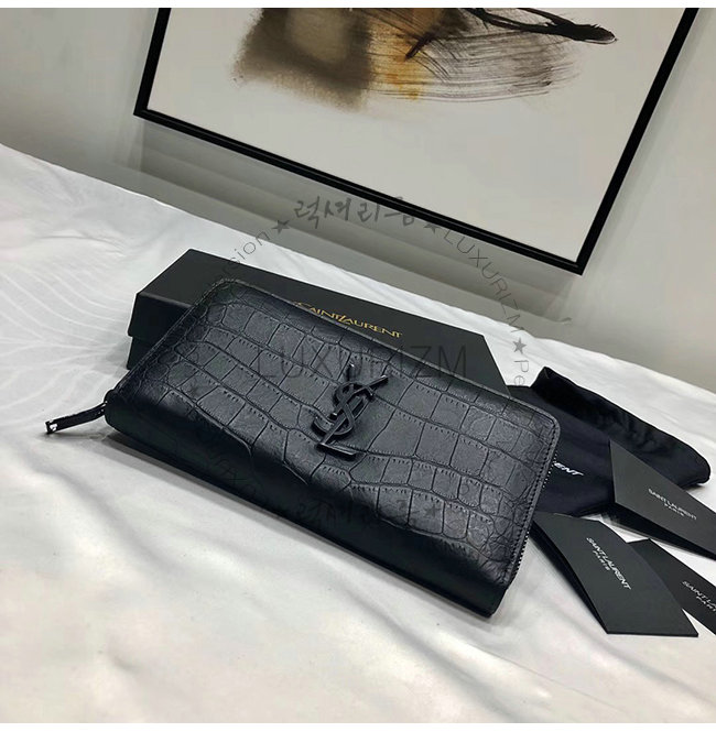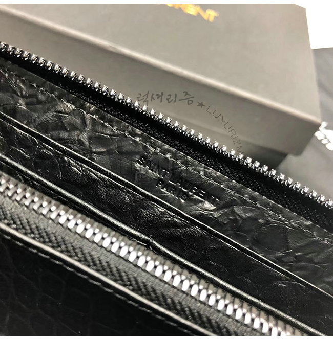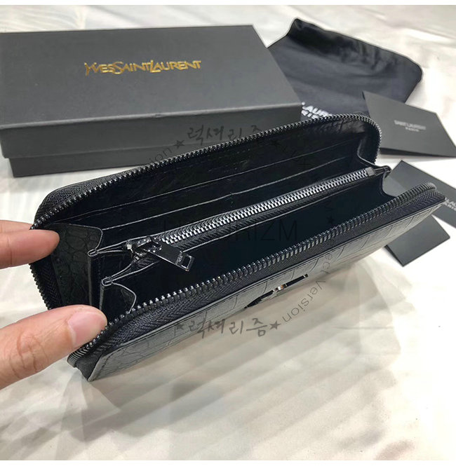 [스페셜오더]SAINT LAURENT-529899 생 로랑 블랙 크로커다일 무늬 쉽스킨 라지 모노그램 지퍼 지갑
