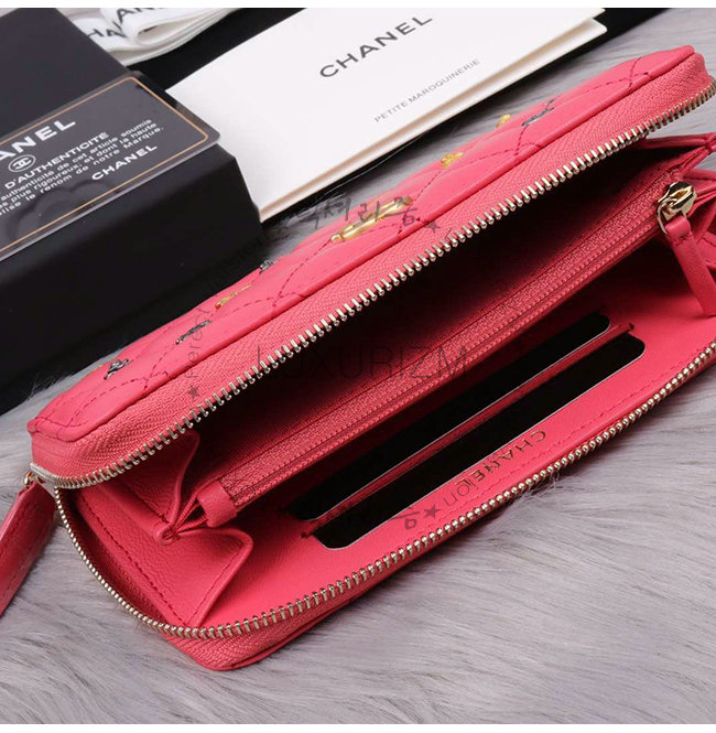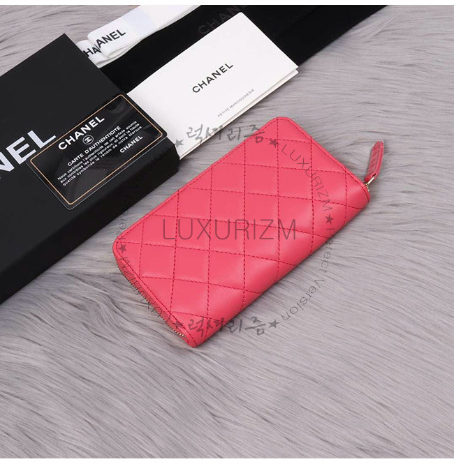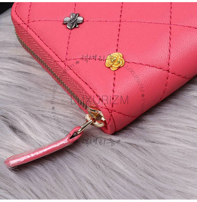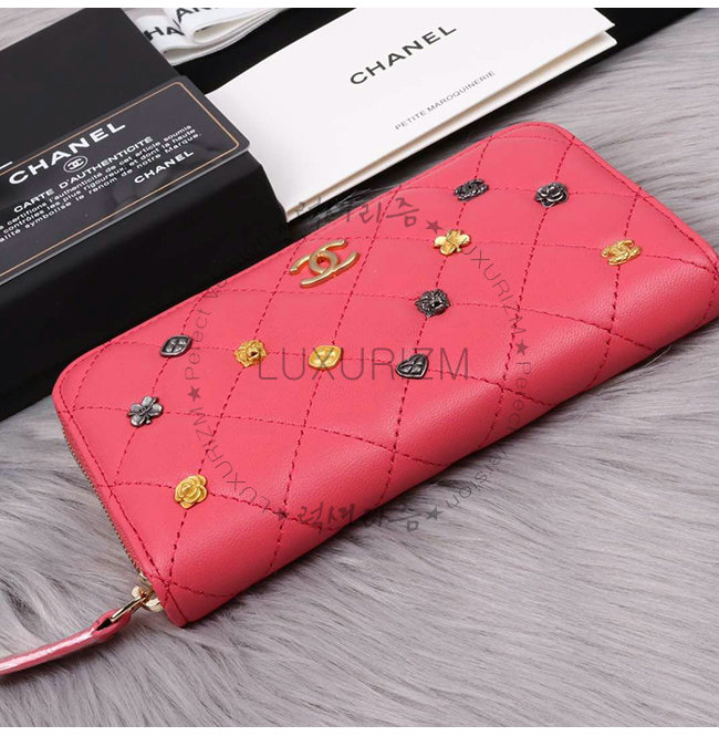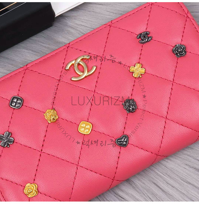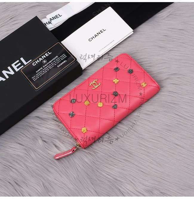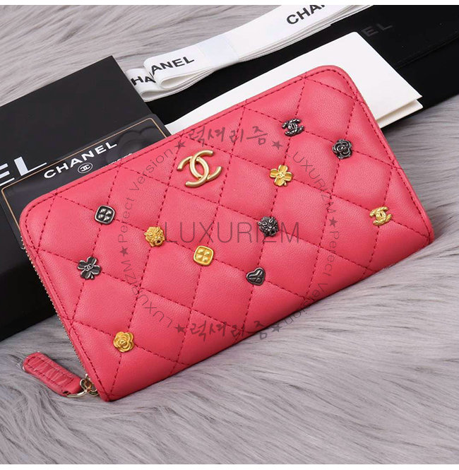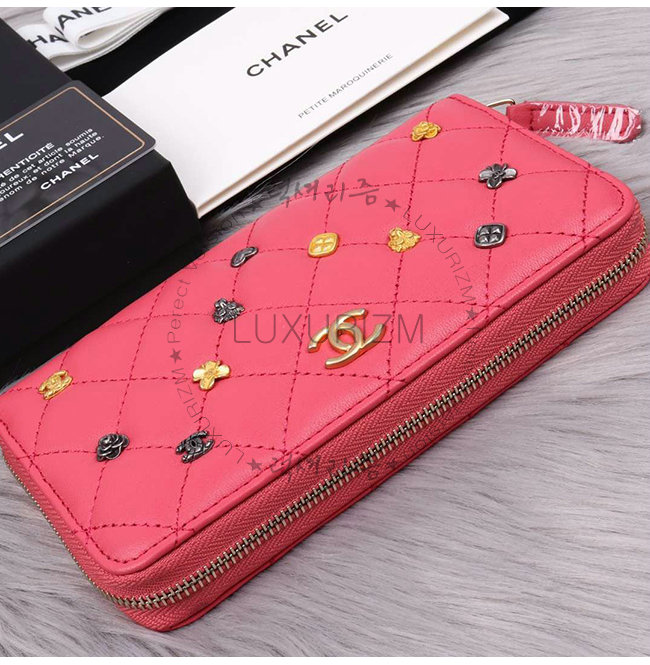 [스페셜오더]CHANEL-A81611 샤넬 핑크 램스킨 스터드 장식 골드메탈 지퍼 지갑