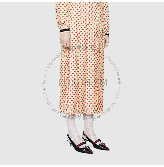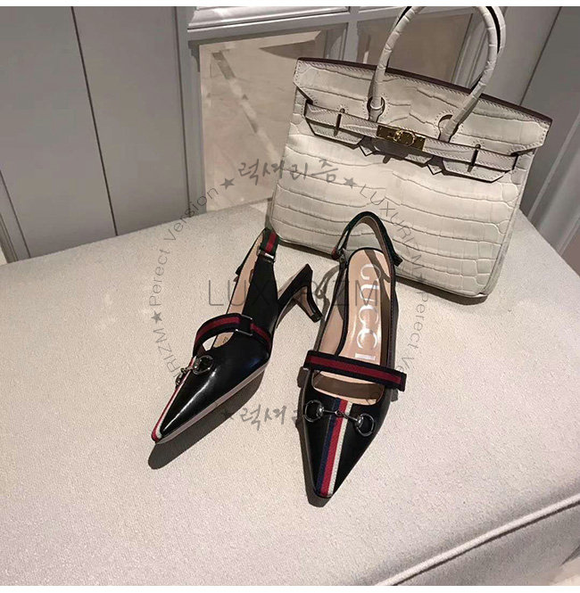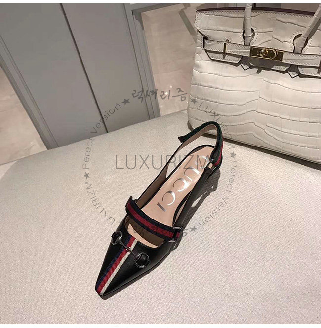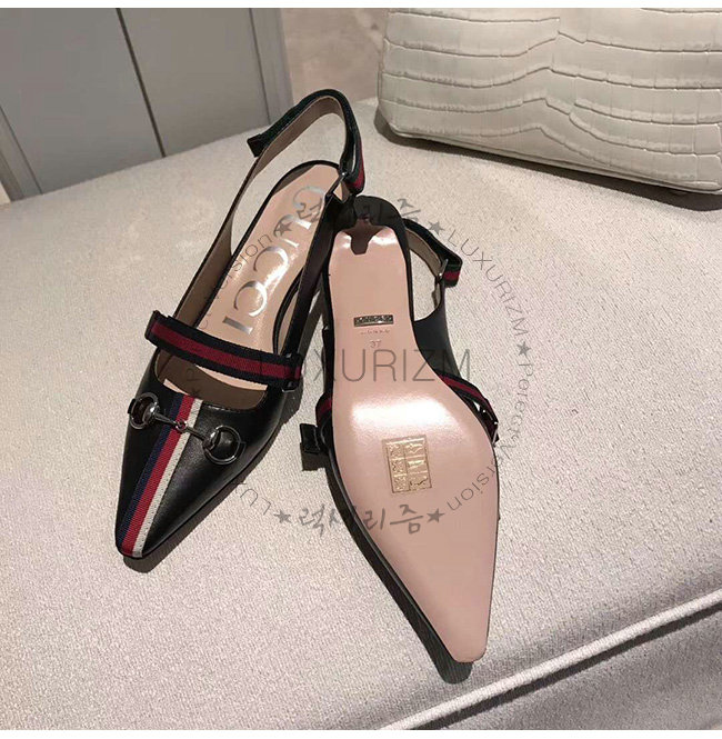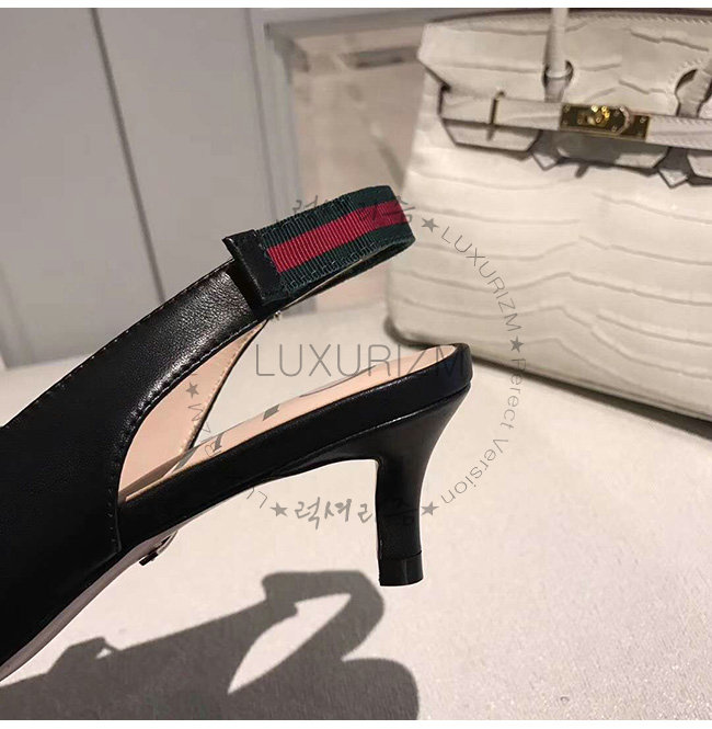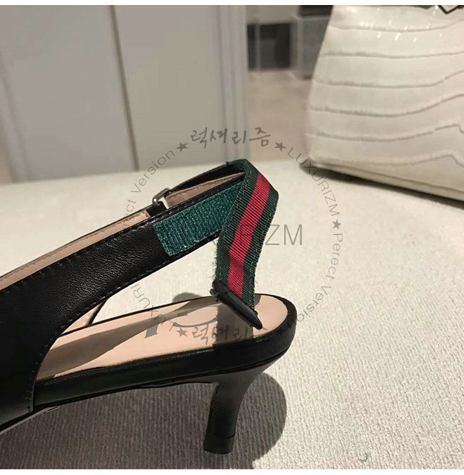 GUCCI-549616 1095 구찌 블랙 가죽 웹(Web) 디테일 미드힐 펌프스