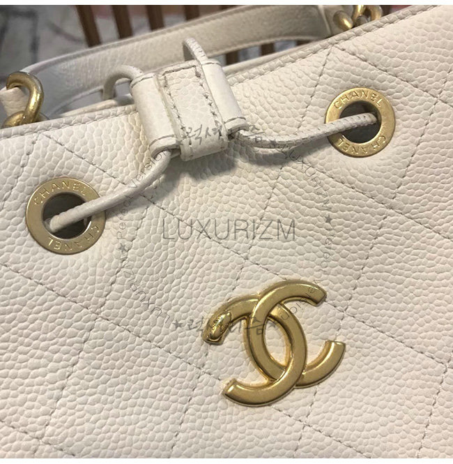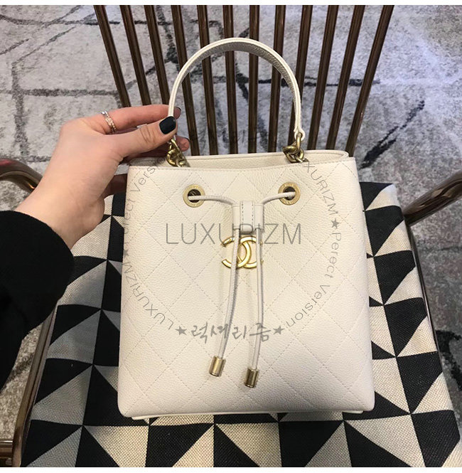 [스페셜오더]CHANEL-AS0310 샤넬 화이트 그레인드 카프스킨 골드메탈 드로스트링 핸드백