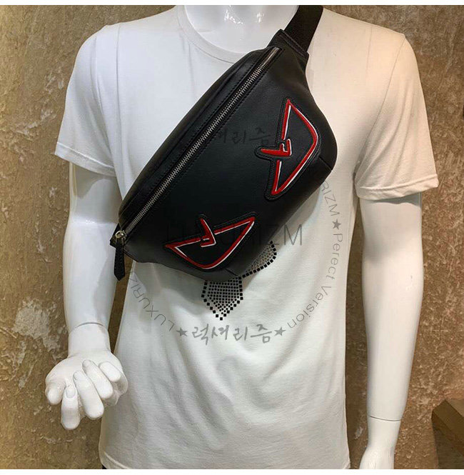 [스페셜오더]FENDI-7VA434 펜디 블랙 송아지 가죽 백 버그 아이 장식 벨트백