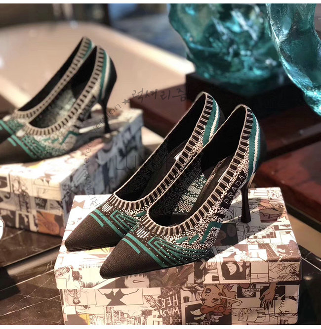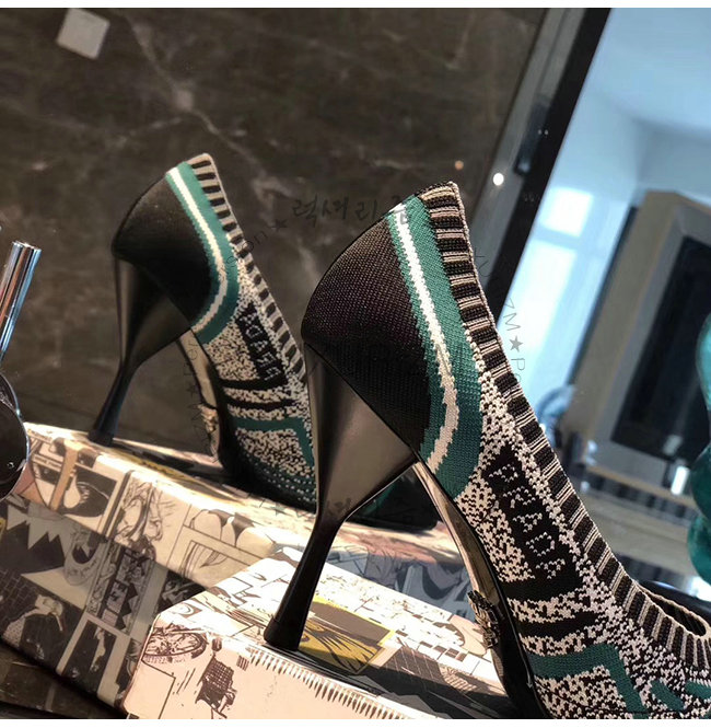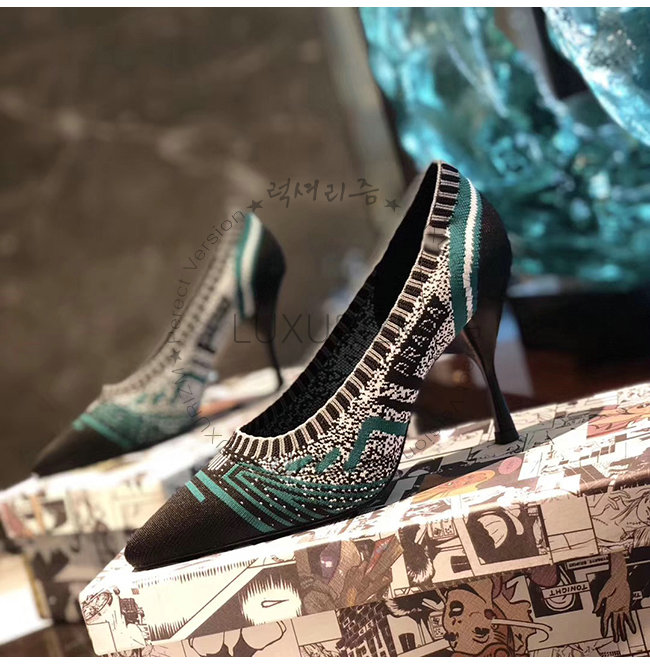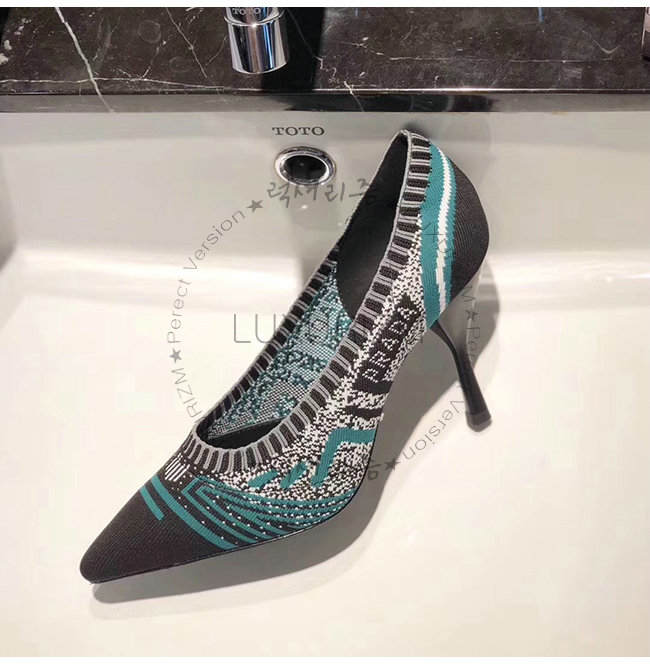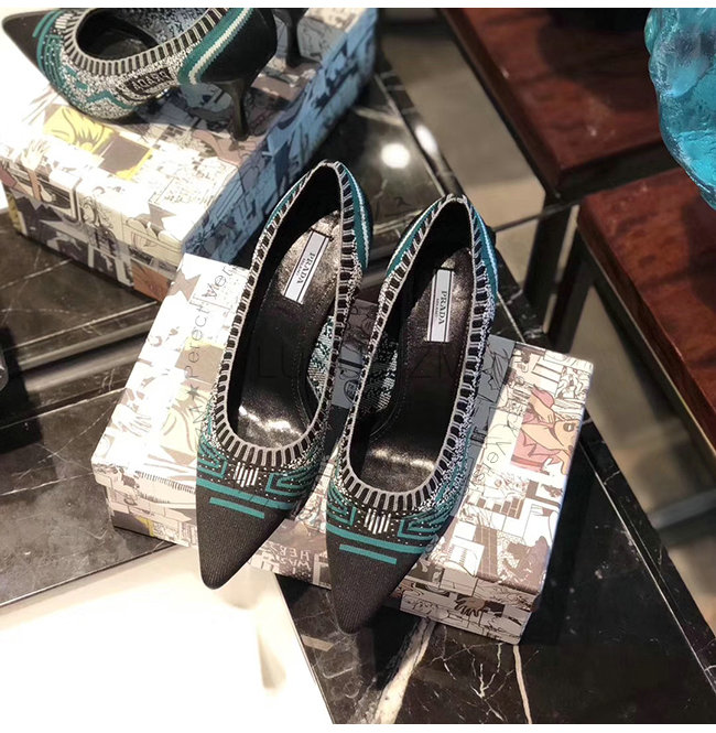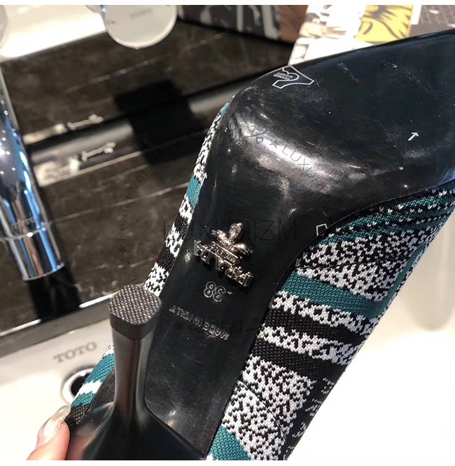 PRADA-1I192L 프라다 그린 니트 페브릭 포인티토 펌프스