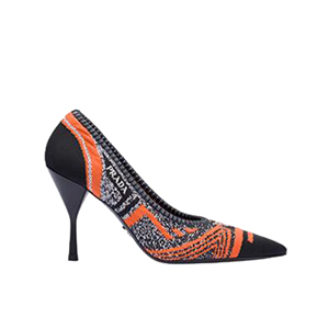 PRADA-1I192L 프라다 오렌지 니트 페브릭 포인티토 펌프스