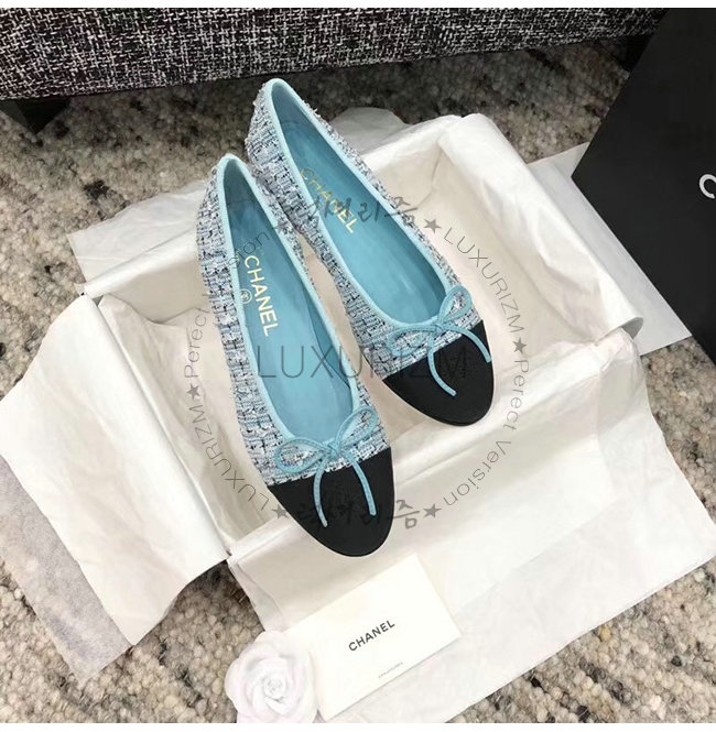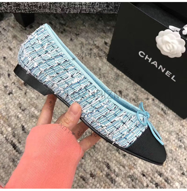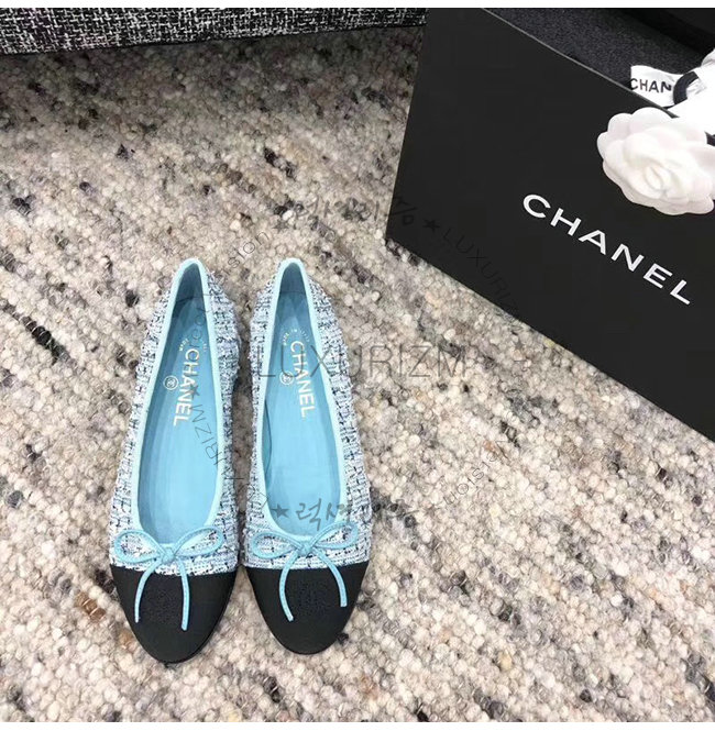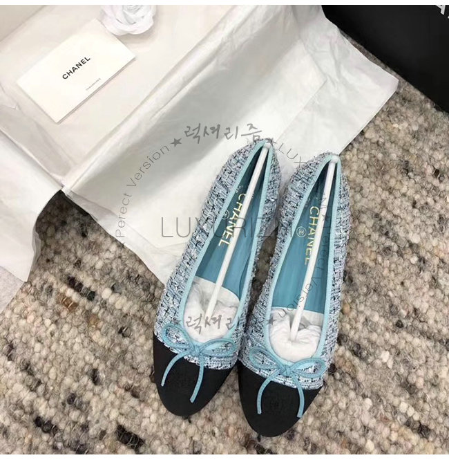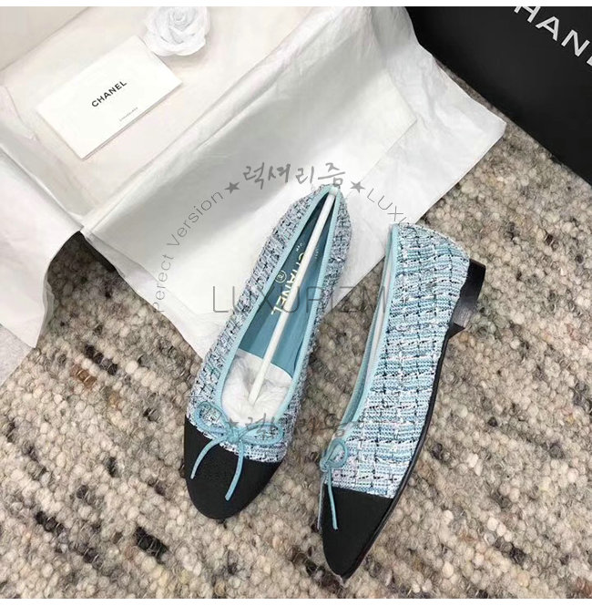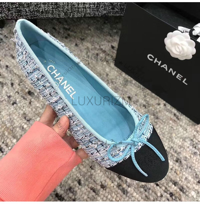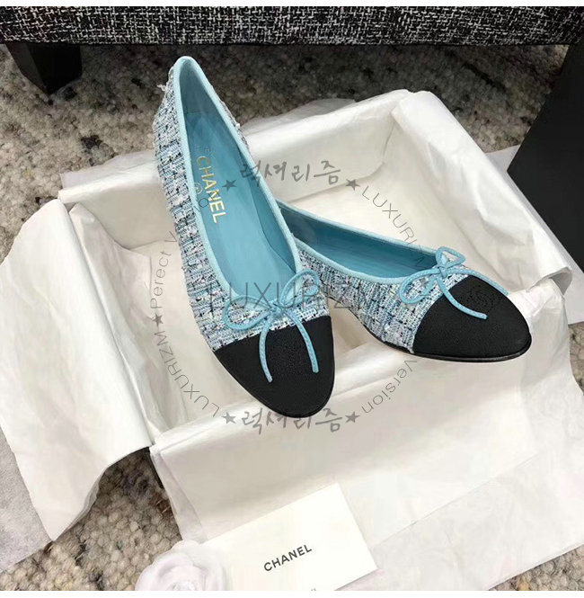 CHANEL-G02819 샤넬 블루 트위드 그로그랭 플랫 슈즈