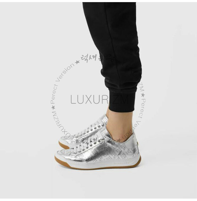 부드러운 메탈릭 가죽 소재의 운동화. 펀칭 디테일의