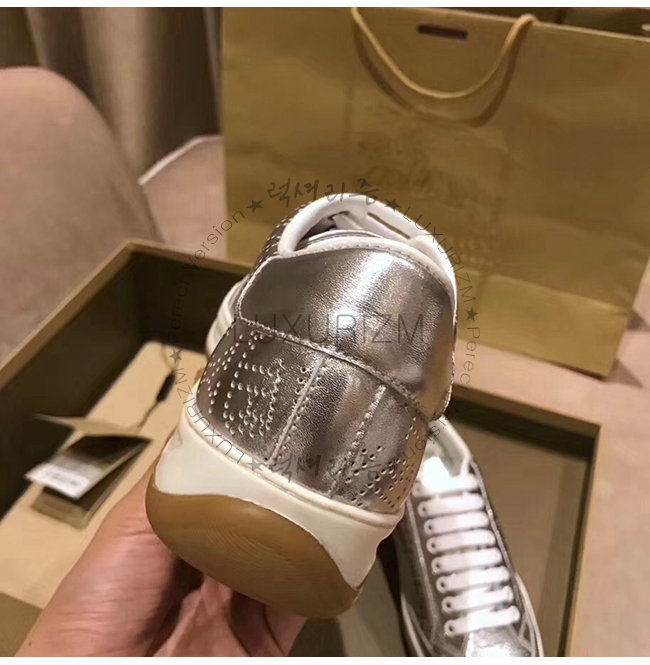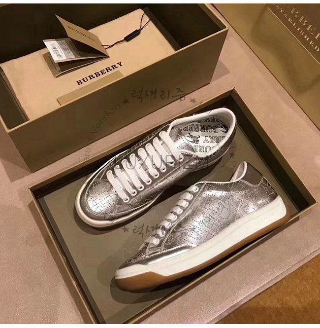 BURBERRY-80054351 버버리 실버 송아지 가죽 퍼포레이트 로고 메탈릭 스니커즈(남여공용)