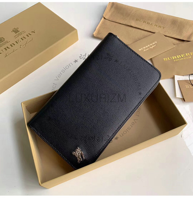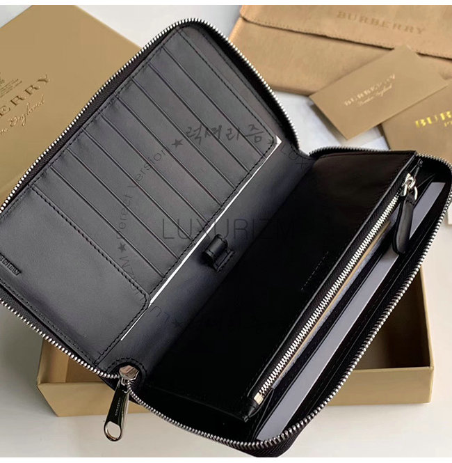 [스페셜오더]BURBERRY-80060161 버버리 블랙 송아지 가죽 런던 지퍼라운드 지갑