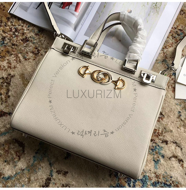 [스페셜오더]GUCCI-569712 9022 구찌 주미 화이트 그레이니 가죽 스몰 탑 핸들백