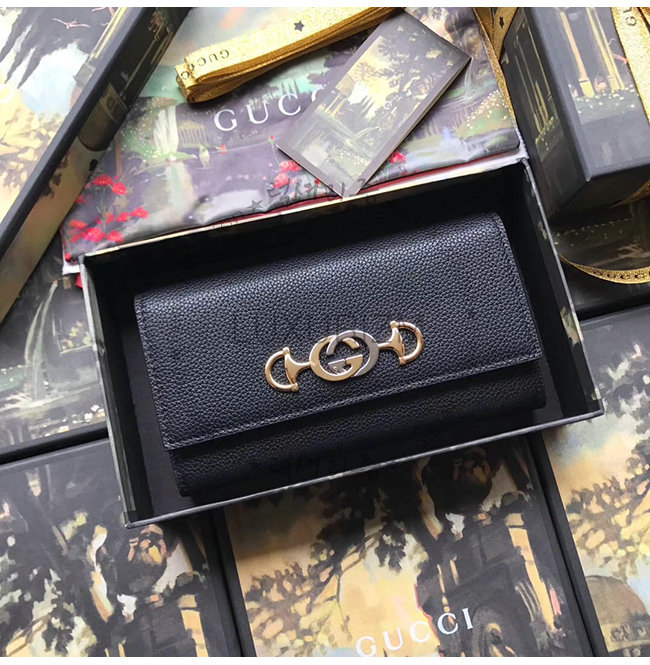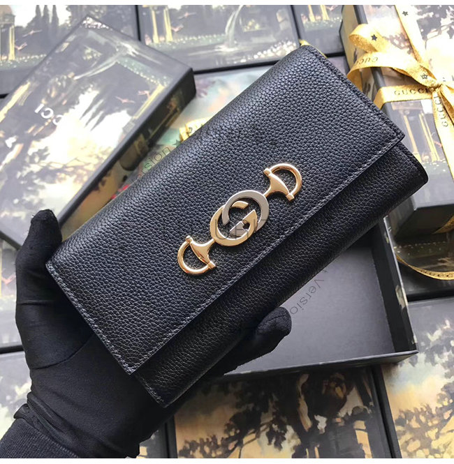 [스페셜오더]GUCCI-573612 1000 구찌 주미 블랙 그레이니 가죽 장지갑
