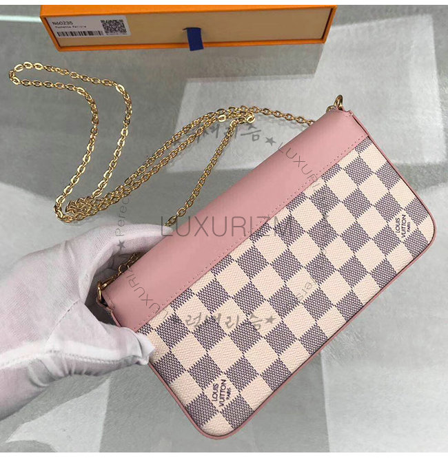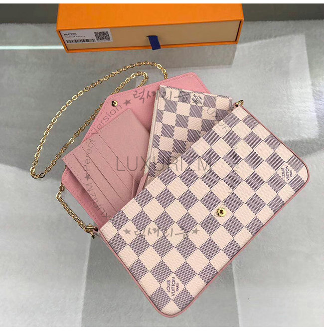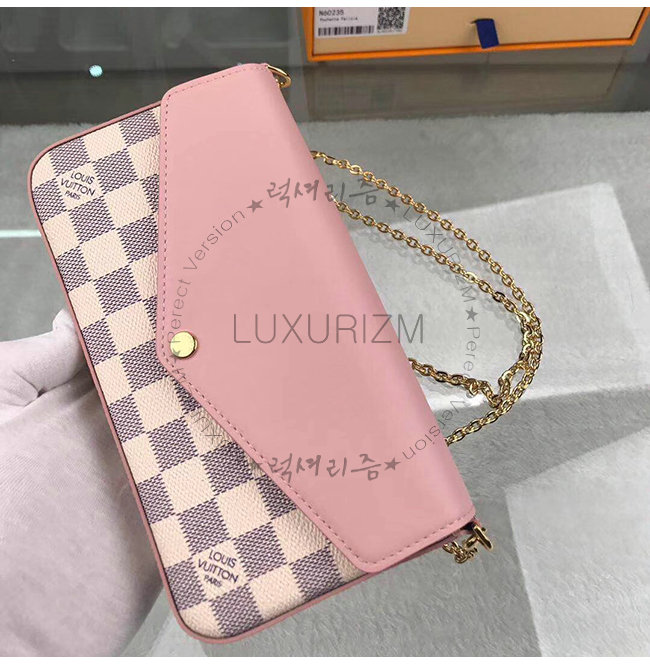 [스페셜오더]LOUIS VUITTON-N60235 루이비통 다미에 아주르 핑크 송아지 가죽 포쉐트 펠리시