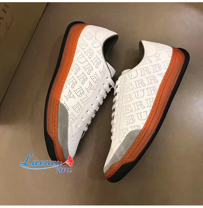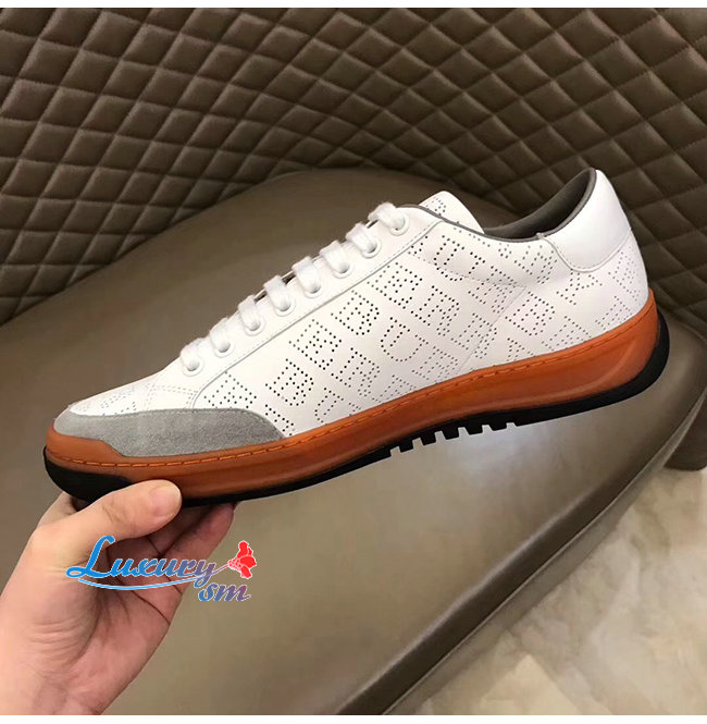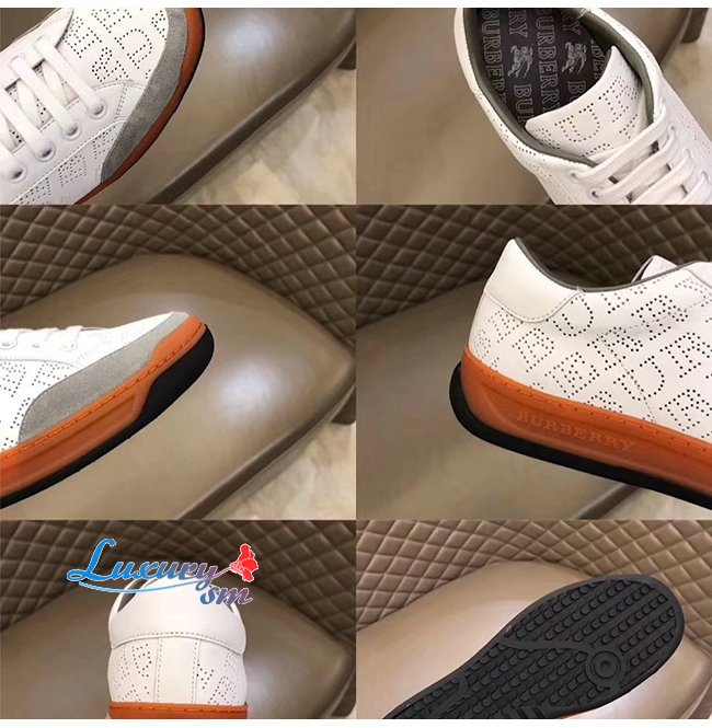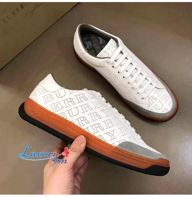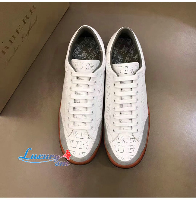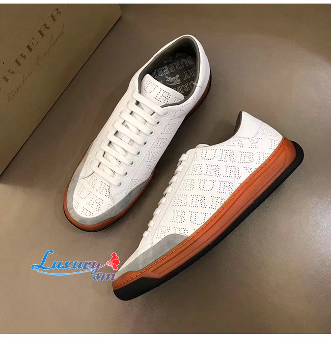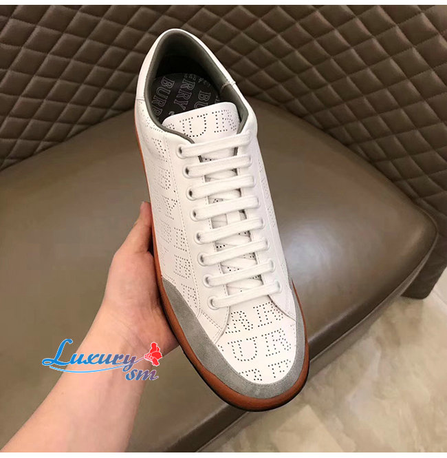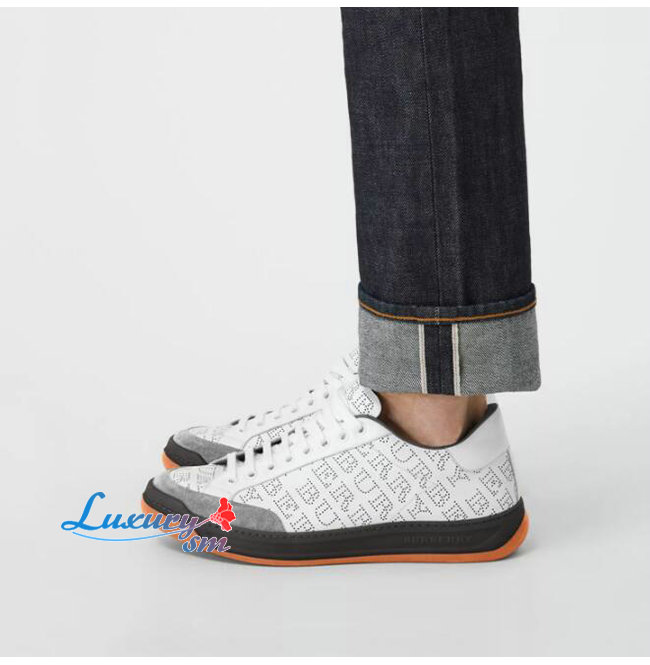 BURBERRY-80054361 버버리 화이트 송아지 가죽 퍼포레이트 로고 스니커즈