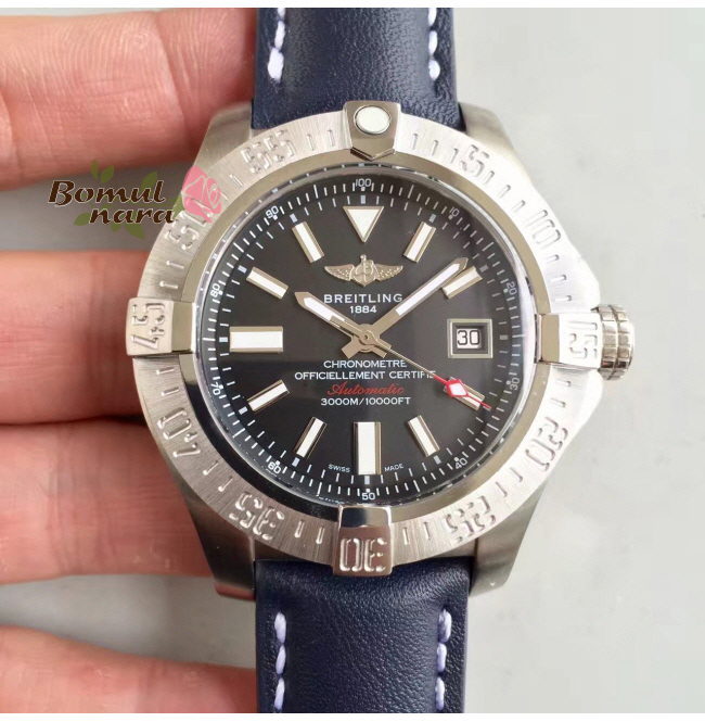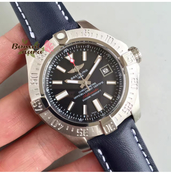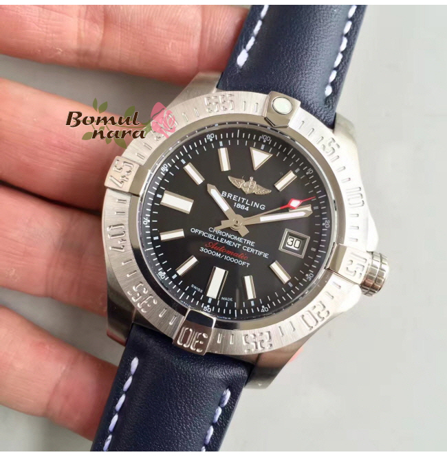 [스페셜오더]BREITLING-브라이틀링 어밴져 II GMT 블랙 스틸 블랙다이얼 워치 43mm