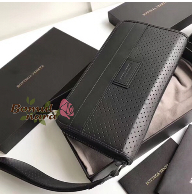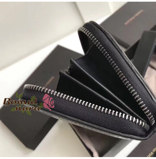 [스페셜오더]BOTTEGA VENETA-566197 보테가 베네타 네로 레제로 가죽 짚 어라운드 지갑