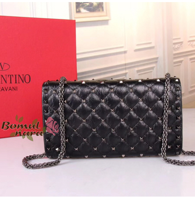 [스페셜오더]VALENTINO-SW2B0 발렌티노 블랙 크링클 양가죽 락스터드 스파이크 크로스 바디 클러치