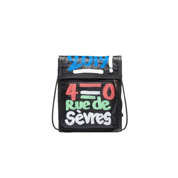 BALENCIAGA-532298 발렌시아가 블랙 스몰 웨이브 로고 자수 파우치 스트랩 백