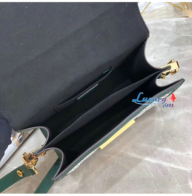 다크 그린 색상의 송아지 가죽 트리밍과 독특 한 도핀