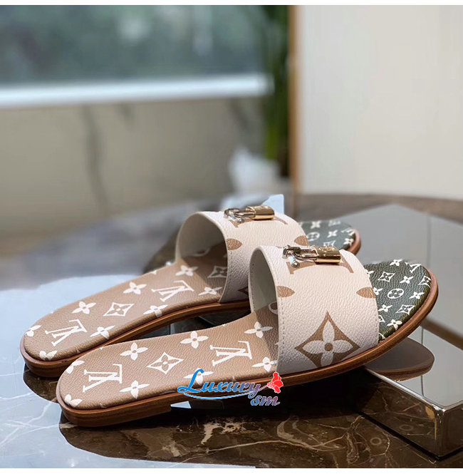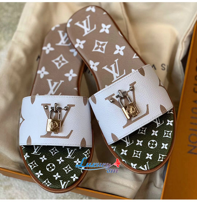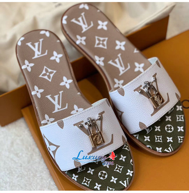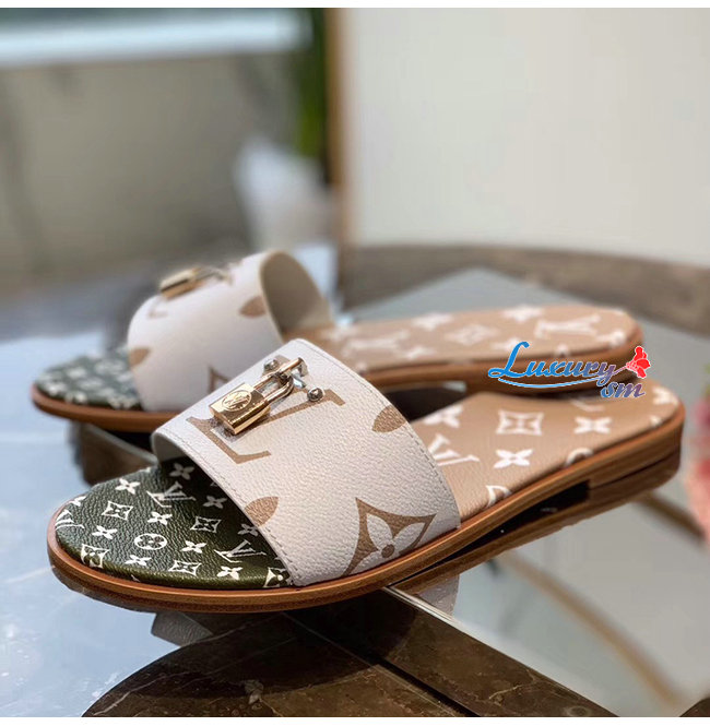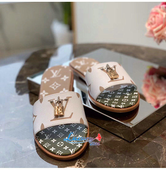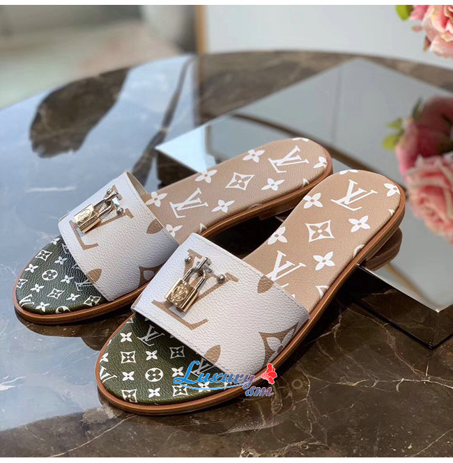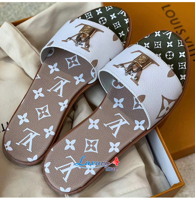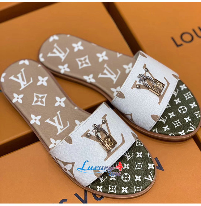 LOUIS VUITTON-1A580B 루이비통 화이트/카키/브라운 모노그램 락 잇 플랫 뮬