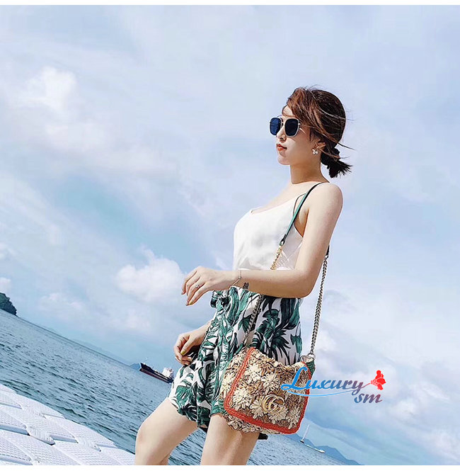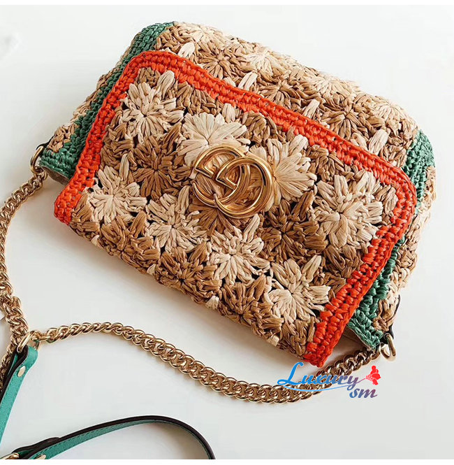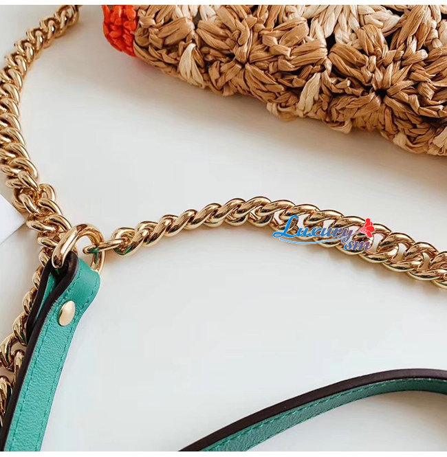 [스페셜오더]GUCCI-574433 8927 구찌 GG 마몽 라피아 그린/레드 디테일 스몰 숄더백