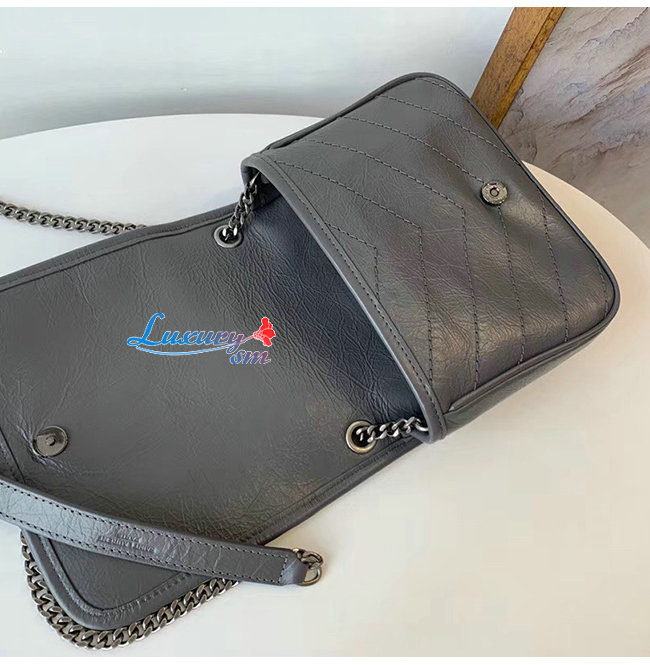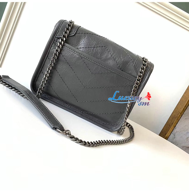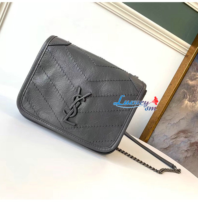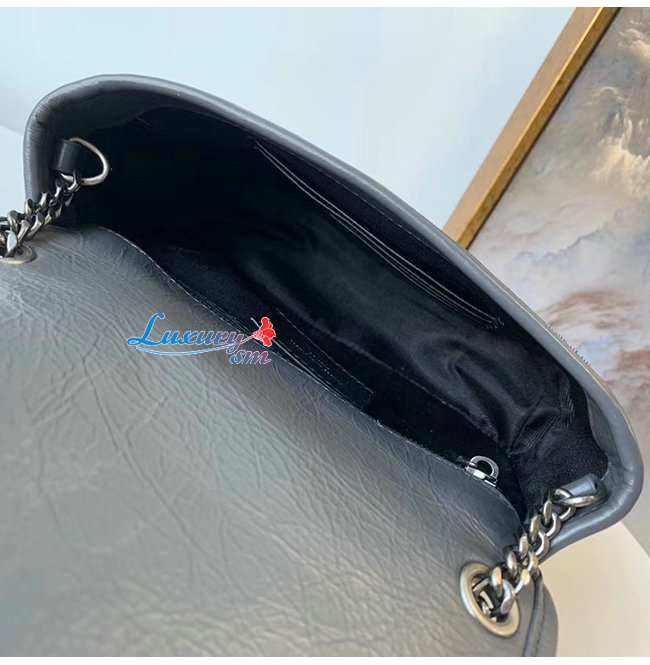 [스페셜오더]SAINT LAURENT-583103 생 로랑 차콜 그레이 빈티지 송아지 가죽 니키 체인 월릿