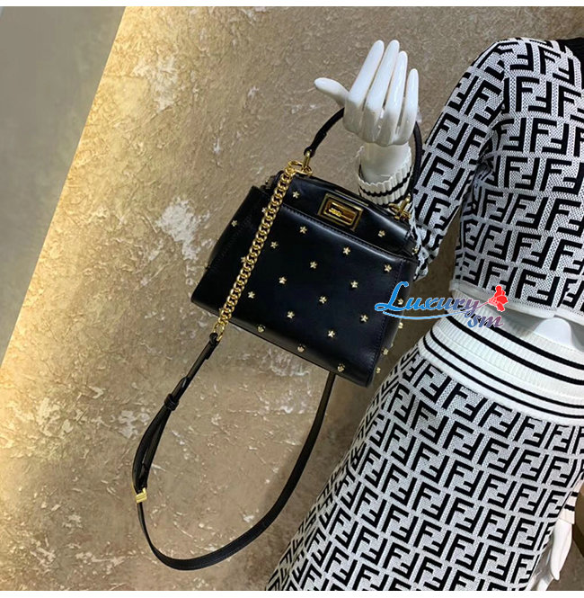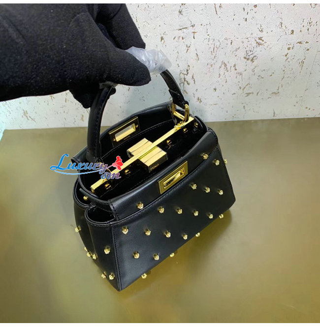 [스페셜오더]FENDI-8BN309 펜디 블랙 양가죽 스터드 장식 피카부 아이코닉 XS