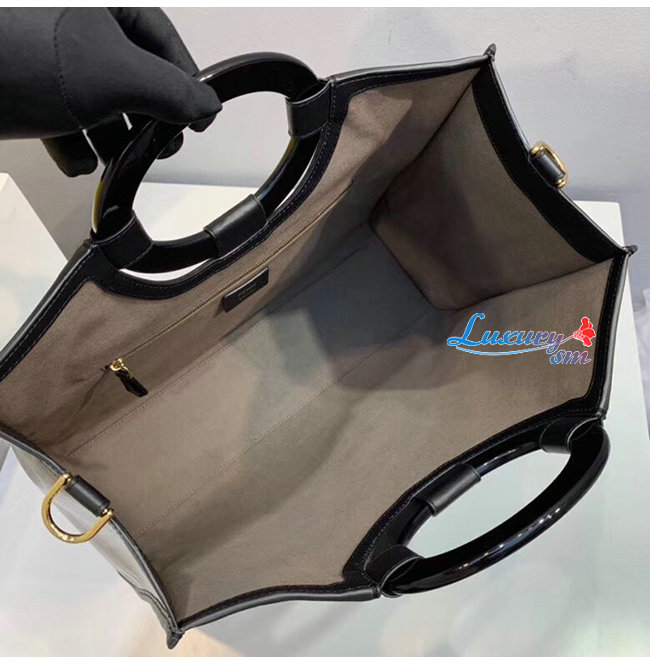 타원형 더블 핸들과 메탈 링 디테일.