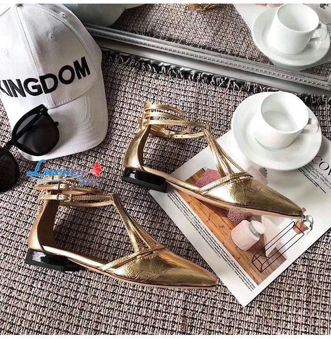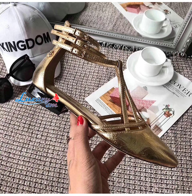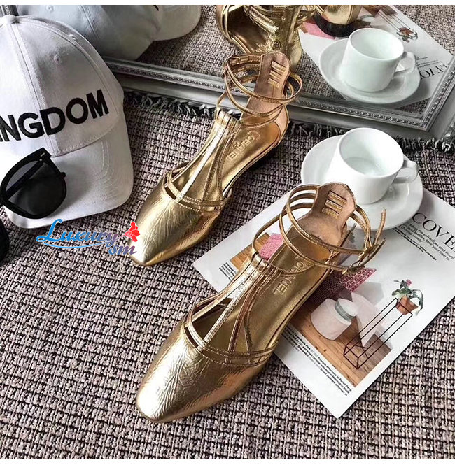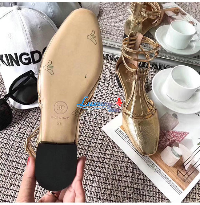 CHANEL-G35047 샤넬 골드 페인티드 엠보싱 카프스킨 샌들