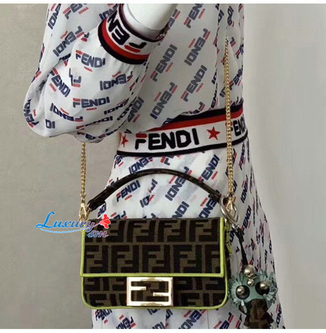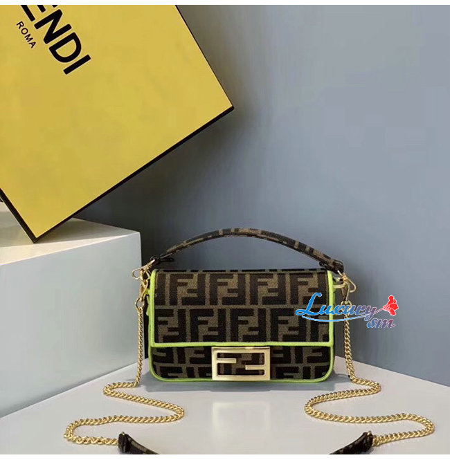 [스페셜오더]FENDI-8BS017 펜디 더블 F 페브릭 야광 옐로우 디테일 미니 바게트백