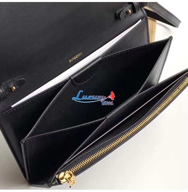 [스페셜오더]BURBERRY-80097551 버버리 블랙 송아지 가죽 디태처블 스트랩 모노그램 모티프 지갑