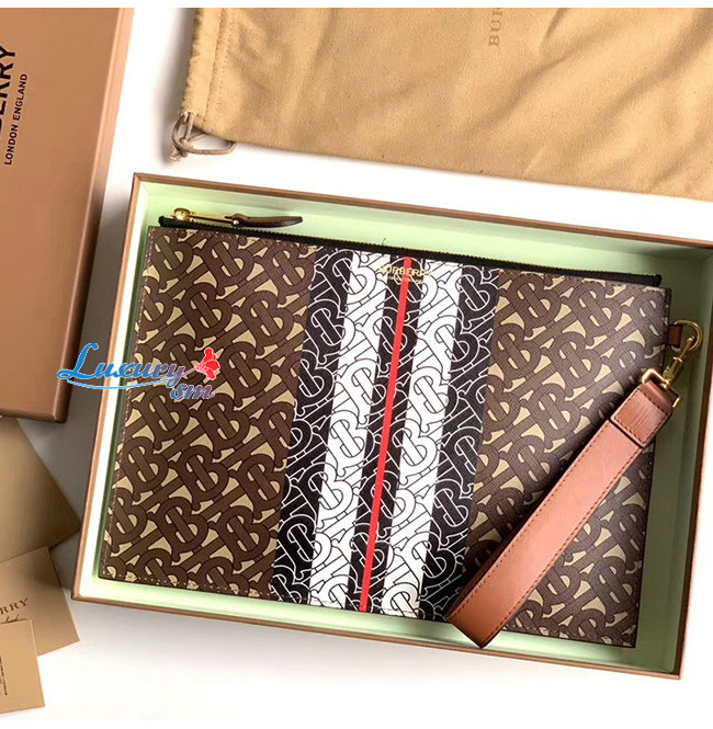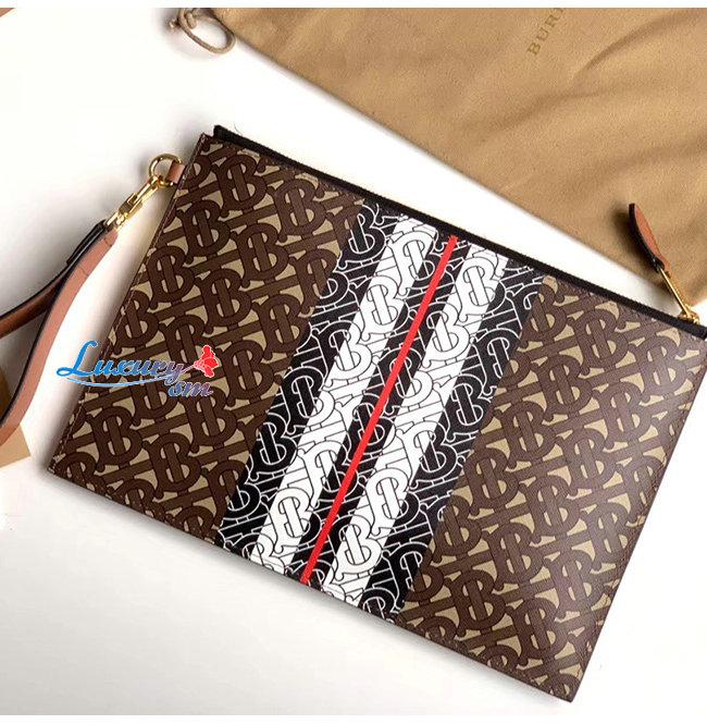 [스페셜오더]BURBERRY-80188941 버버리 모노그램 스트라이프 E-캔버스 지퍼 파우치