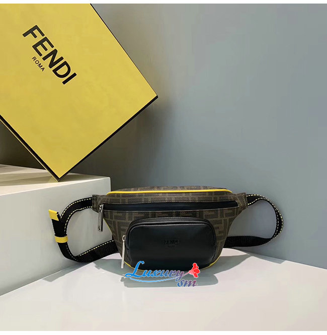 브라운 컬러의 FF 모티프, 블랙 가죽,옐로우 파이핑
