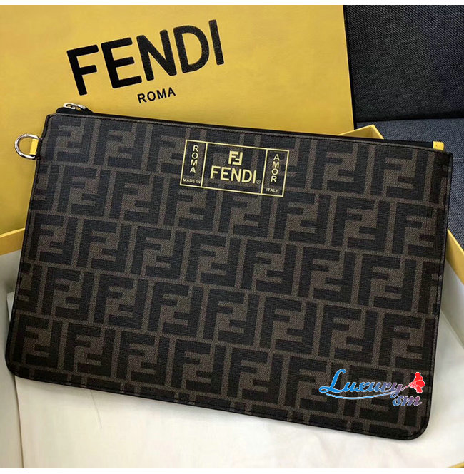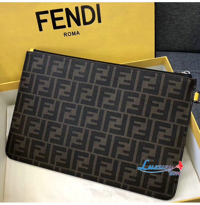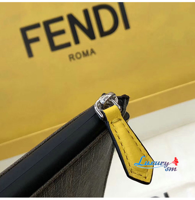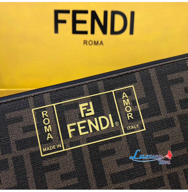 [스페셜오더]FENDI-7N0078 펜디 브라운 송아지 가죽 더블 F 로고 엠보싱 파우치