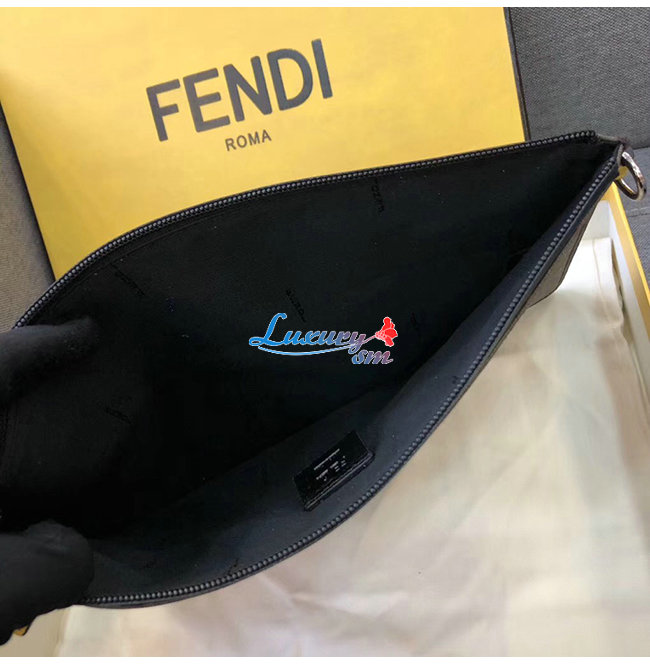 FENDI-7N0078 펜디 블랙 송아지 가죽 FF 자수 파우치