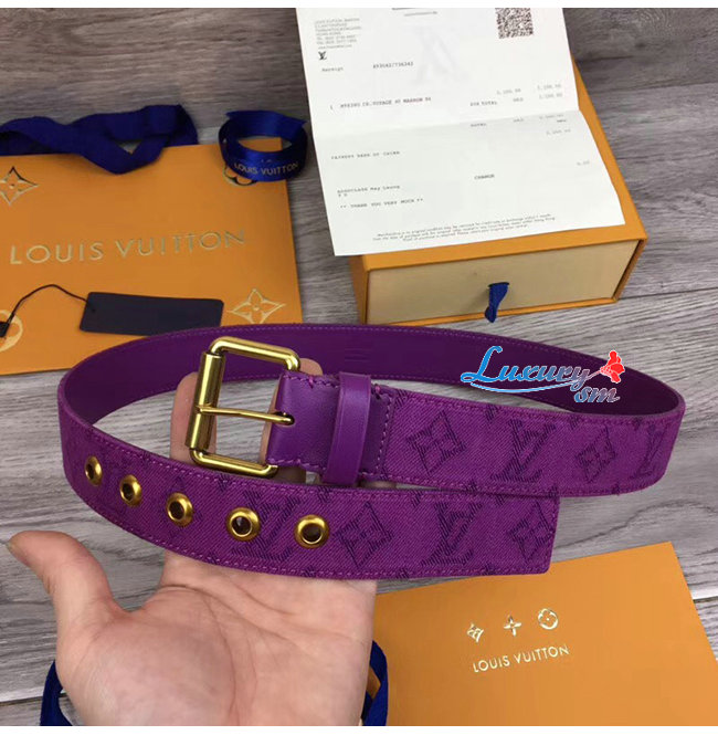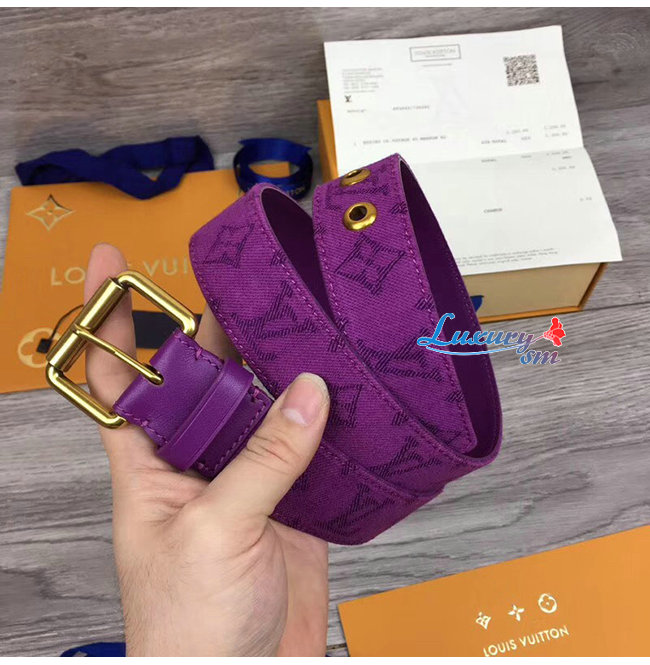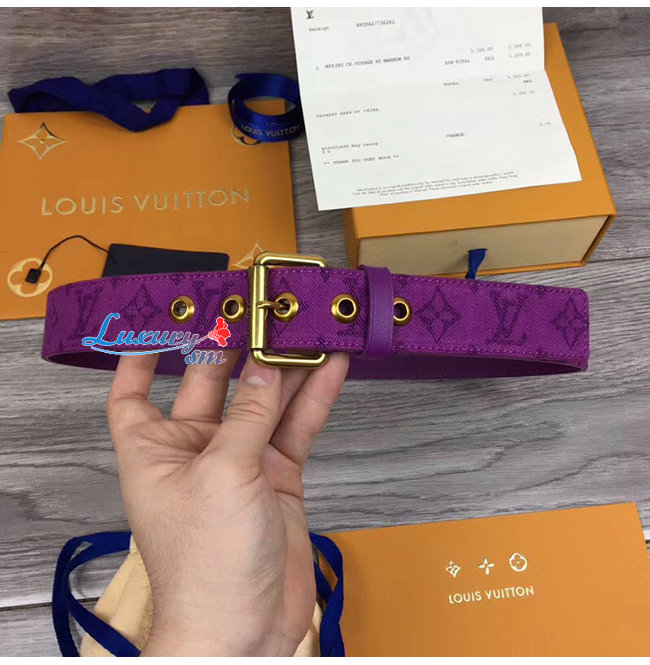 LOUIS VUITTON-M0177Q 루이비통 퍼플 모노그램 데님 시그니처 벨트 35MM