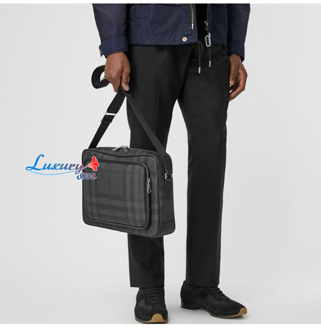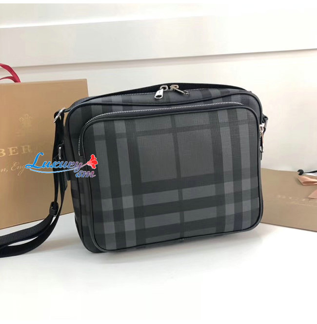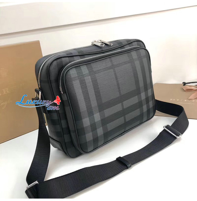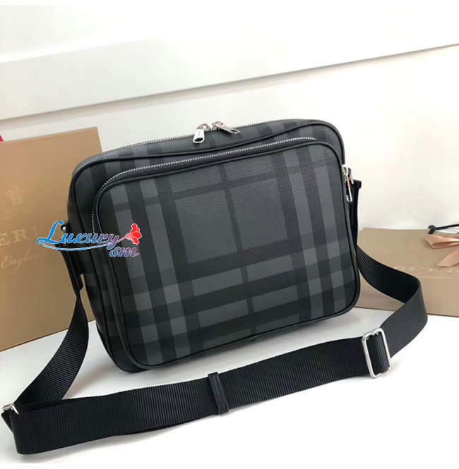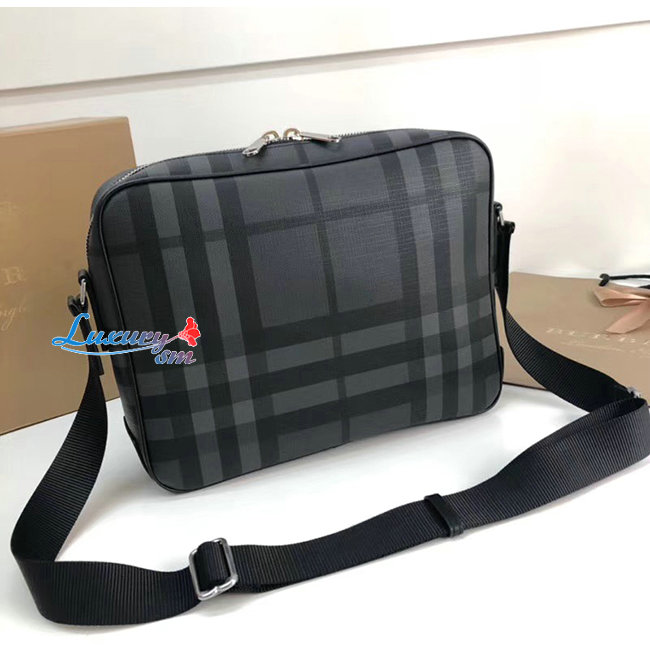 [스페셜오더]BURBERRY-80139871 버버리 다크 차콜 런던 체크 레더 메신저백