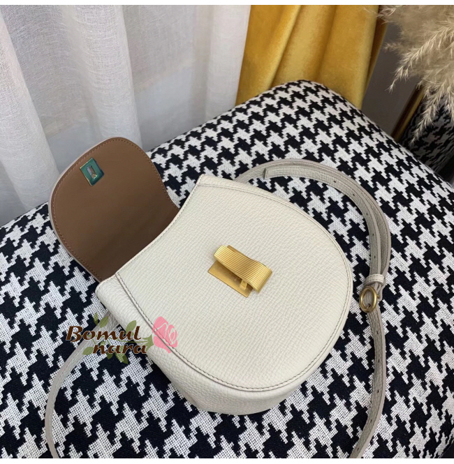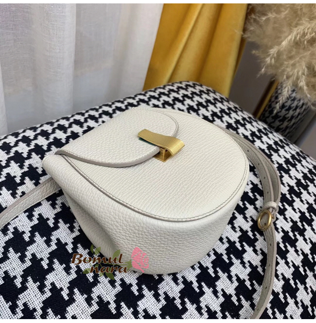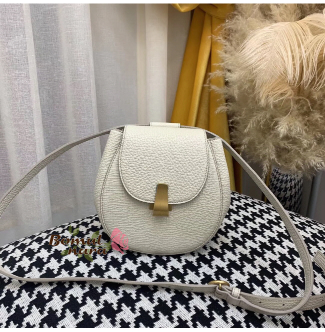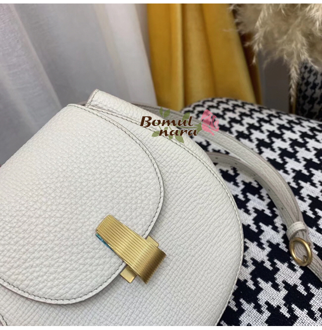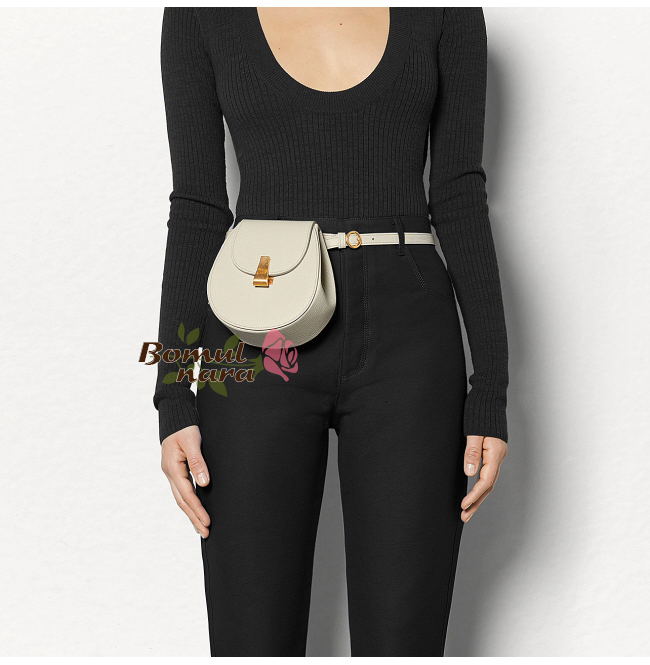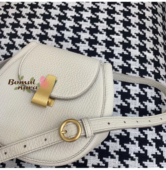인그레이빙 잠금 장치가 장식된 둥근 형태의 벨트 백